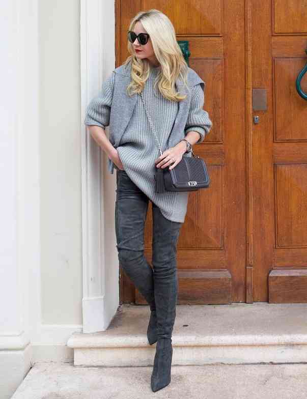 Cizmele peste genunchi sunt elementul must-have din această iarnă. De la cizme elegante din piele la modele futuriste, opțiunile sunt numeroase și variate. La fel ca bloggerul de modă Blair Eadie, puteți opta pentru o pereche de cizme care se potrivește cu culoarea blugilor skinny pentru a crea un aspect coeziv.