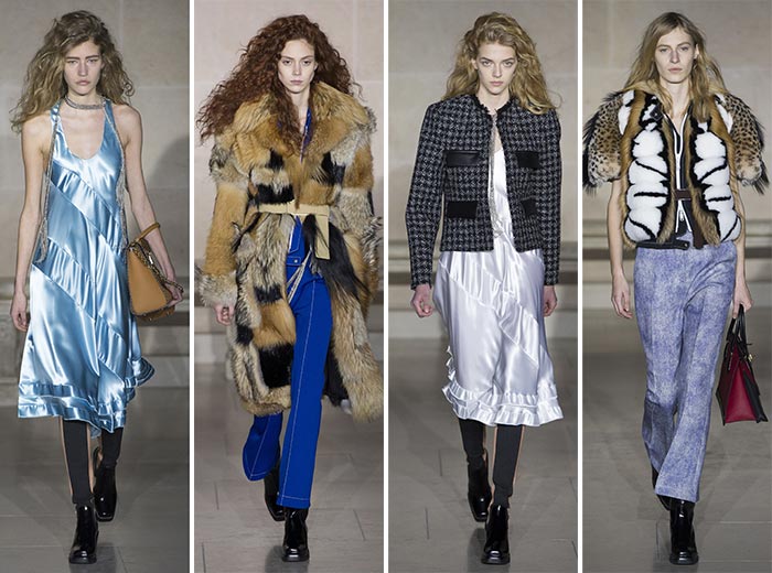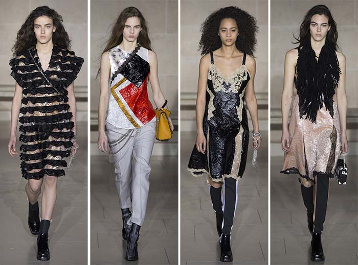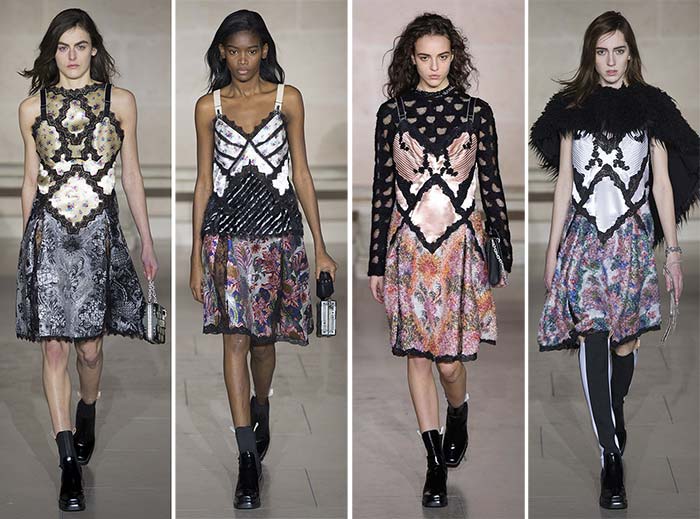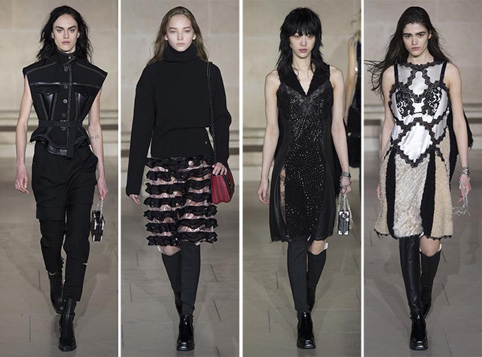 Cu toate că este predominant inspirată de anii ’00, colecția Louis Vuitton pentru toamna / iarna 2017-2018 a explorat pe scurt vibrații inspirate de moda anilor ’00, modernizând dulapurile noastre viitoare cu rochii cu efect metalic și accente sidefate, care au fost utilizate în cea mai mare parte pe genți must-have.