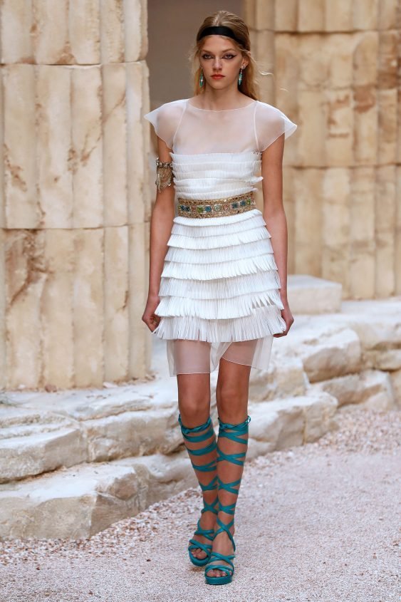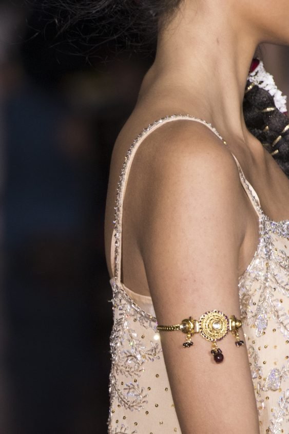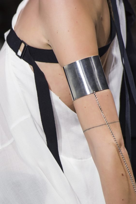Acest trend al bijuteriilor corporale a fost declanșat în recentul spectacol Chanel Cruise 2018, care părea că are loc la ruinele antice din Grecia – deși era de fapt la Grand Palais din Paris. A fost amuzant, pentru că această combinație de antichitate și prezent a reflectat exact interpretarea inovativă a lui Karl Lagerfeld a bijuteriilor: purtând lucruri vechi într-un mod nou. Pe de o parte, modelele arătau ca niște zeițe, purtând manșete și brățări pe braț, două accesorii pe care nu ne gândim cu sinceritate să le purtăm. Pe de altă parte, păreau ca niște femei urbane moderne, purtând sandale colorate și materiale noi.