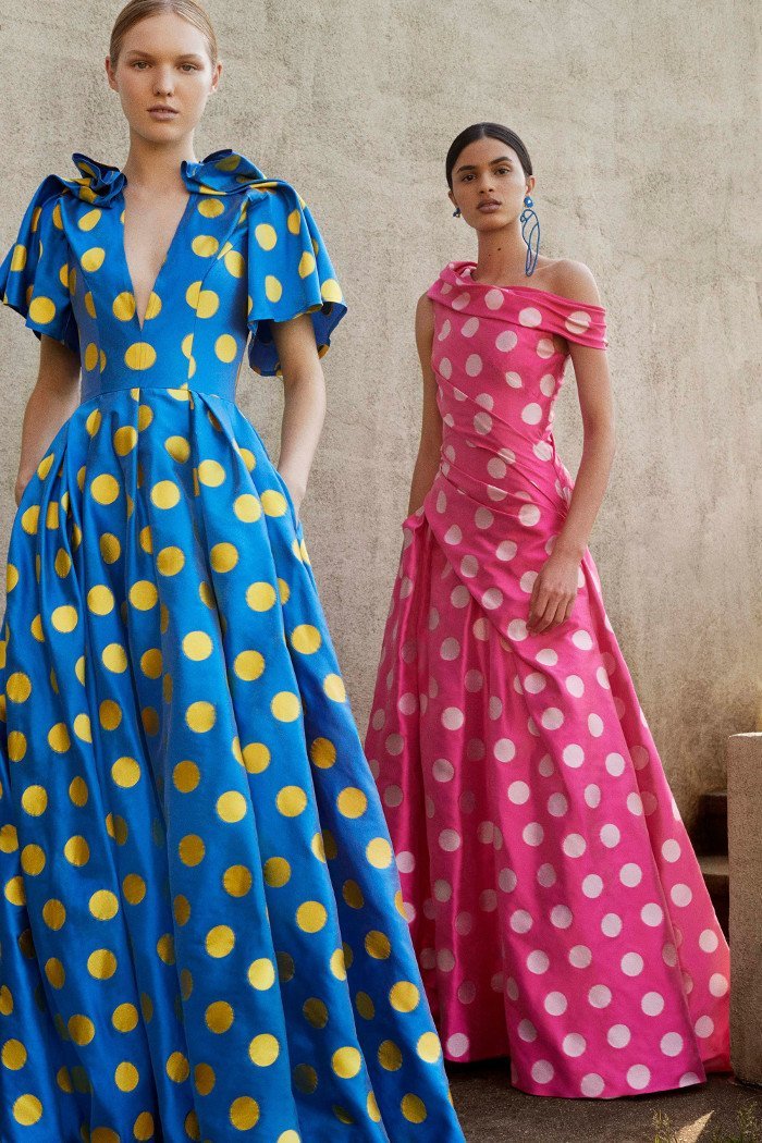 Designurile florale domină colecția. Imprimeurile diferite includ bujori roz, violet dulce și galben. Desenele diverse permit tuturor să își găsească imprimeul floral. Există frumoase rochii midi florale perfecte atât pentru ocazii de zi cu zi, cât și ocazii formale. Carolina Herrera a creat, de asemenea, fuste fascinative cu volum mare, cu motive din grădina ei de familie.