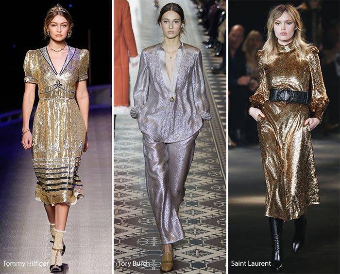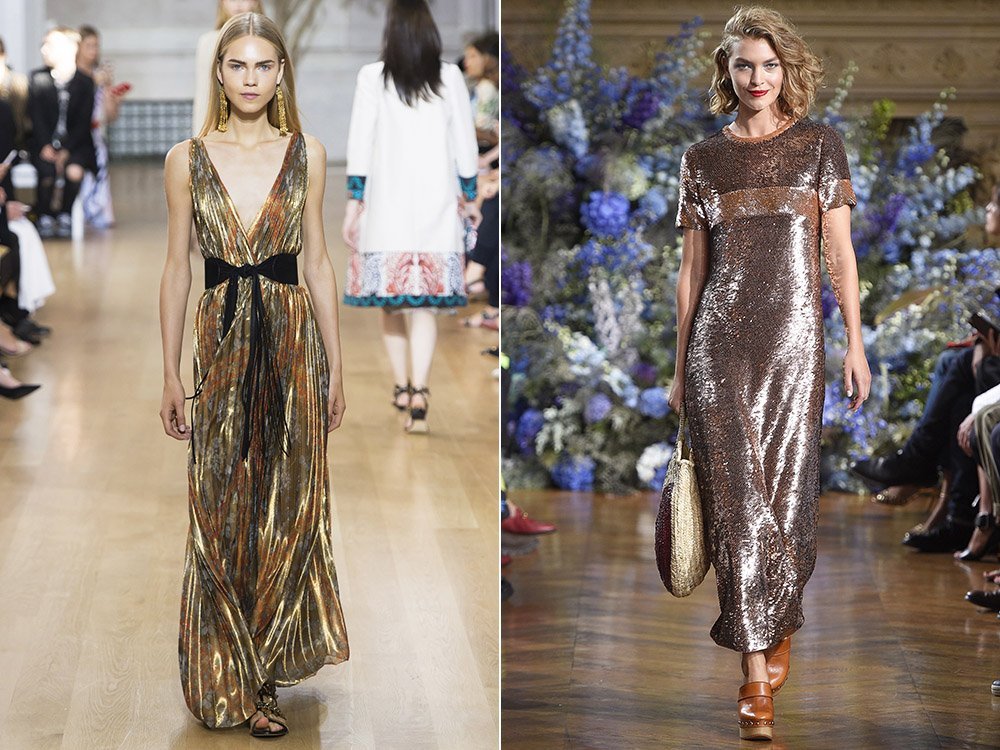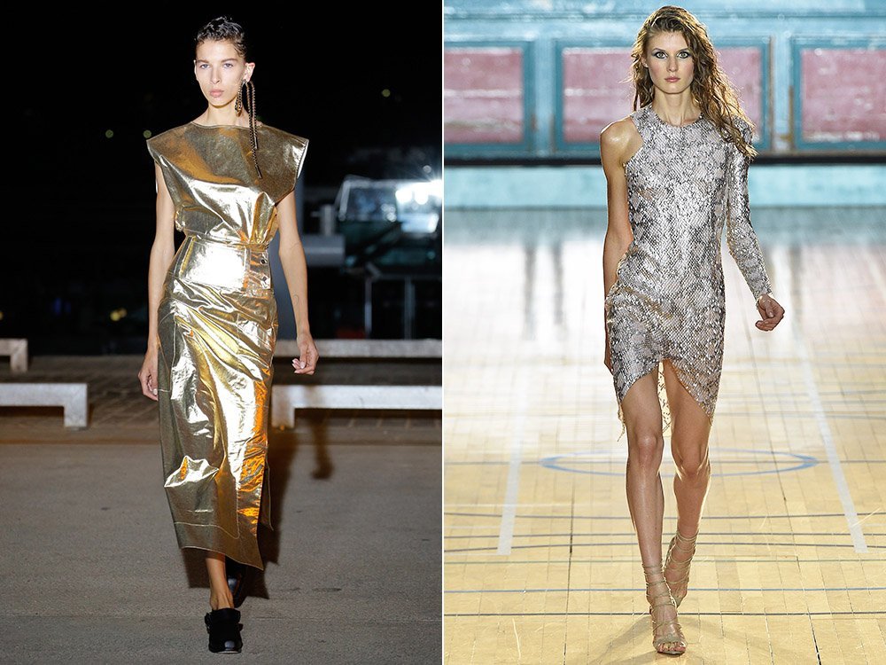 Luciu aurului și argintului topit, efectul de folie de staniu, piele strălucitoare cu imitație de piele de reptile, paiete, au pus rochiile „metalice” printre cele mai trendy în primăvara-vara 2017. Mai mult, în cazul în care organza metalică, mătase și sclipici au fost purtate doar la ocazii speciale, acum, rochiile cu efect metalic fac parte din look-ul casual.