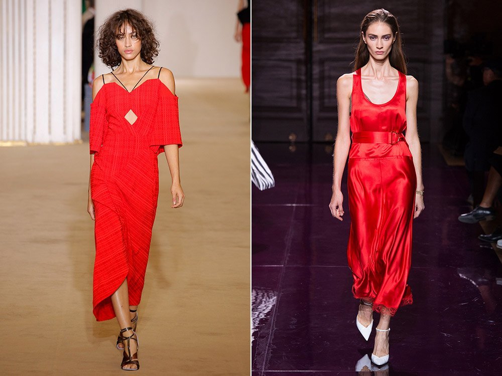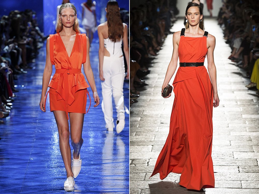 Când dacă nu vara ne bucurăm de culori suculente și intense? În spectacolele de modă, pasarelele par a înflori cu nuanțe de albastru, galben, roșu, și albastru închis. Dar, pe primul loc sunt încă rochiile roșii, împreună cu nuanțe de coral, vișiniu și bordo. Christian Siriano, Emilio Pucci, Bottega Veneta și Victoria Beckham au inclus în colecțiile lor culoarea curentă a sezonului, și anume „Flacăra”. Roșu ca focul arată foarte bine atât pe rochii de seară, cât și pe rochii casual.