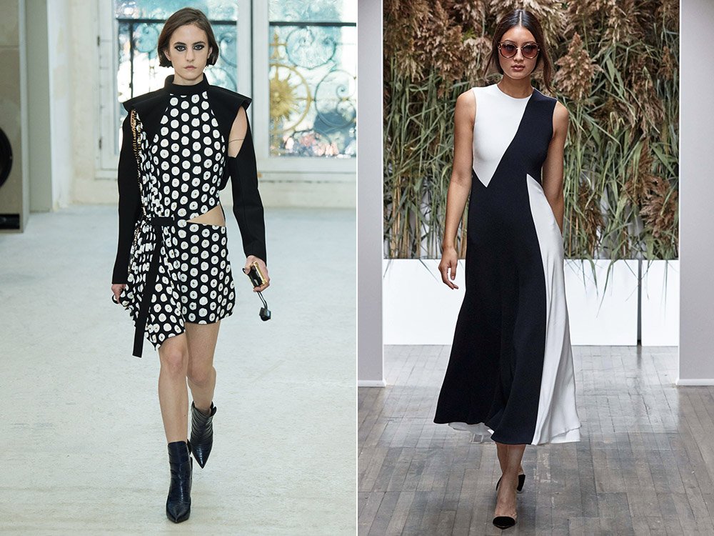 În cazul în care Adam Selman, Alexander Wang și Barbara Casasola au optat pentru culoarea negru clasic, apoi Marissa Webb, Chloé, Christian Siriano și Jil Sander au ales bej deschis. Mulți designeri au optat pentru combinatii grafice de alb-negru, care au fost prezentate în toate variantele posibile: de la buline și carouri, la dungi și diamante. Carolina Herrera a creat rochii în dungi alb-negru și carouri Vichy, atât de trendy în acest sezon.