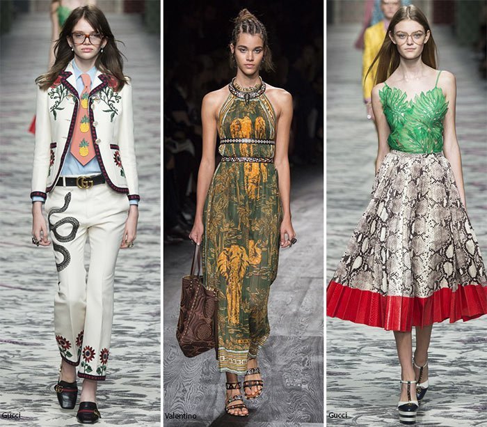 8: Imprimeuri animale: Imprimeurile de animale sunt alegerea unei femei sexy, moderne si cu incredere in sine. De la imprimeuri leopard la imprimeuri sarpe atat in culorile lor naturale, cat si in maniere mai colorate in timpul verii, imprimeurile animalele sunt inca un mare hit pentru noul sezon. Atata timp cat avem Roberto Cavalli, imprimeurile de animale sigur vor fi la moda. Pe langa imprimeurile clasice de animale, in acest sezon, multi designeri au optat pentru tehnici noi, extraordinare, care aduc imprimeuri animale, sub forma de logo, precum si iluzii optice. Și, ca intotdeauna, imprimeurile animale apar atat pe piesele de imbracaminte, cat si pe accesorii, inclusiv pantofii si genti. Pentru versiunile naturale de leopard, vizitati Anna Sui, Rachel Zoe si Just Cavalli, pentru mai multe optiuni colorate, va puteti inspira din colectiile Christian Dior, Carlos Miele, Kenzo si altii. Imprimeurile reptile au fost prezente la Salvatore Ferragamo, Gianfranco Ferré si Gucci.