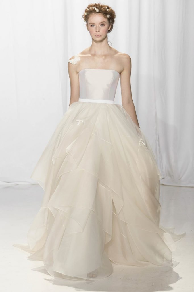 Fustele largi dar cu caderi fluide si o tesatura de calitate sunt combinatia perfecta pentru o mireasa de neuitat.