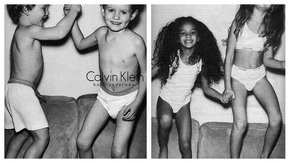CK a fost criticat pentru acest anunț în 1999 de lenjerie de corp pentru copii. Se credea că imaginile alb-negru ale tinerilor băieți și fete au fost la limita pornografiei infantilă.Președintele Asociației Familiei Americane a declarat că imaginile au fost „nimic mai mult decât pornografie”.