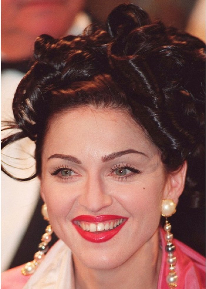 Madonna este una dintre cele mai controversate celebritati care iubeste aspectul indraznet si nonconformist. Aparitia ei la Festivalul de Film de la Cannes in 1991 nu poate fi uitata. In afara de alegerea ei unica de imbracaminte, diva a surprins cu machiajul si parul ei. Ea a purtat buze stralucitoare in nuanta cireasa si sprancenele intunecate si subtiri. Acest aspect este unul dintre cele mai mari momente de frumusete din anii ’90.