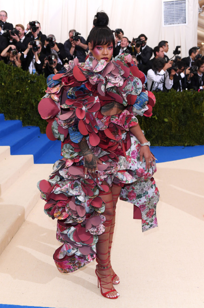 Zeita de la Met Gala a justificat încă o dată locul ei printre cele mai bine îmbrăcate. În spiritul temei, Rihanna a purtat o creație voluminoasă și colorată din colecția Comme Des Garcons.
