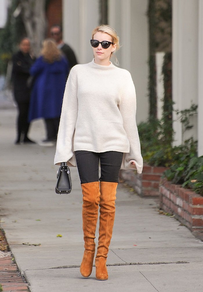Aceste cizme vor fi probabil elementul pe care il veti purta cel mai mult in aceasta toamna. Modul nostru preferat personal pentru a purta aceste cizme sunt fustele si rochiile elegante. Acesta este, de asemenea, cel mai sexy mod de a purta cu stil o pereche de cizme peste genunchi la moda. Aceste cizme vor face picioarele mai subtiri si mai lungi daca sunt purtate corect. Purtati aceste cizme in sezonul rece cu o rochie simpla si dresuri. Și daca nu sunteti un fan la fustelor si rochiilor, atunci alegeti cu perechea preferata de blugi skinny.
