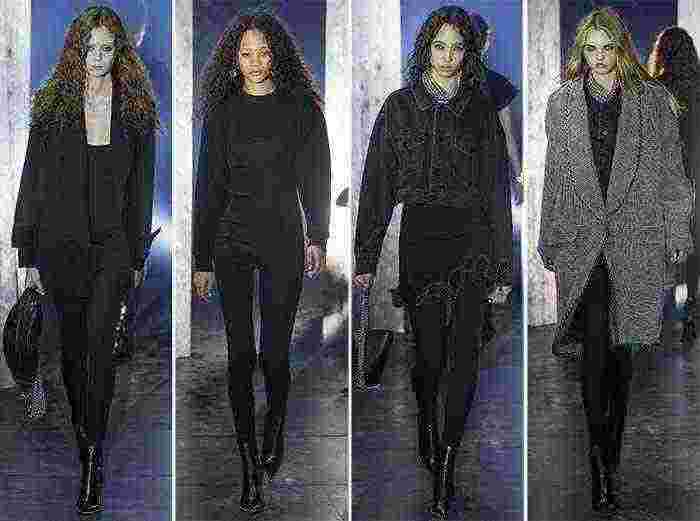 Stilul întunecat al colecției Alexander Wang pentru toamna-iarna 2017-2018 a fost vizibil mai ales prin atitudinea modelelor sale, printre care și modele ale momentului precum Kendall Jenner , Bella Hadid, Natalie Westling, Julia Nobis și Mica Arganara.
