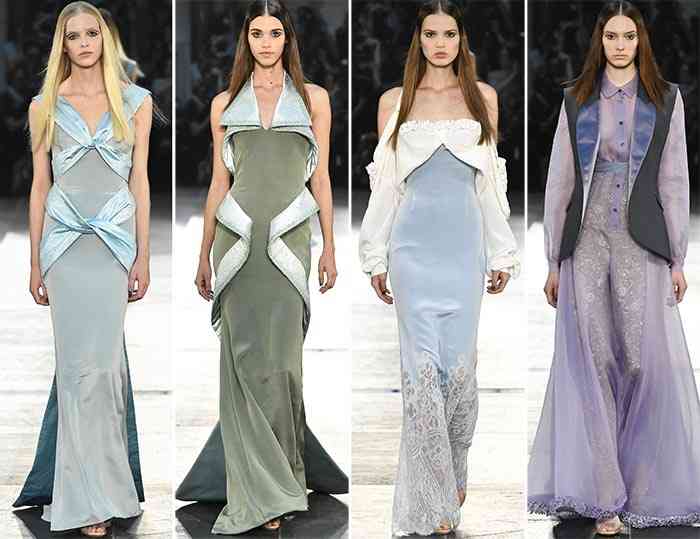 Am văzut culori diverse, mai ales albastru și mov mat, cu tul piersică apărând aici și acolo ca o atingere a unor raze calde. Întreaga paletă a fost pe partea pastel și ne-a adus prințesele Disney în minte.