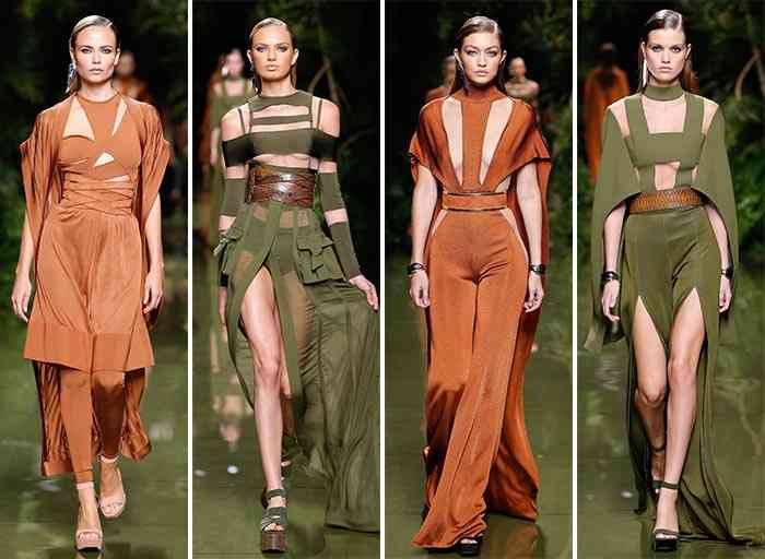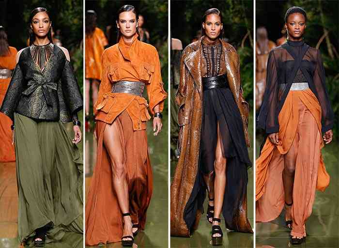 Pentru colecția de primăvară 2017, directorul de creație al casei de modă Balmain, Olivier Rousteing, a adus o senzualitate încrezătoare pe pistă, infuzând-o cu motive „junglă sălbatică” și modele de inspirație militară.