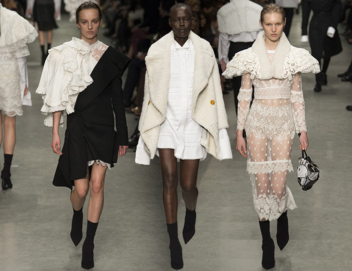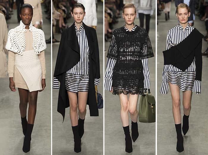 Navigând prin intermediul colecției Burberry pentru primăvara / vara 2017, designerul a ținut cont de proporții și juxtapuneri, deoarece piesele diferă foarte mult în funcție de modul în care ne uităm la ele. În cazul în care ne uităm mult în urmă, veșmintele (mai ales rochiile) apar ca amalgame coerente de îmbrăcăminte și linii, în timp ce, în cazul în care facem câțiva pași mai aproape, întâlnim piese complicate, complet diferite nivelurile de țesături, tăieturi și stiluri.