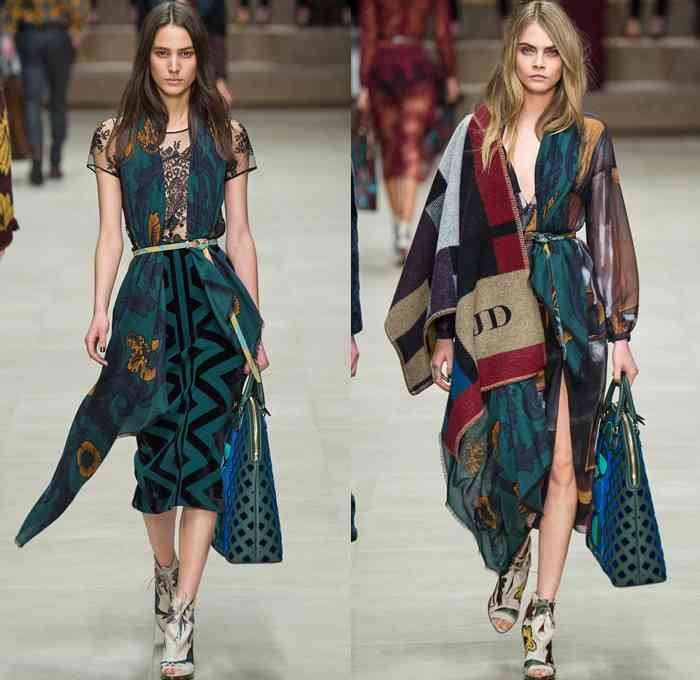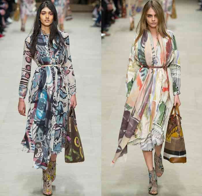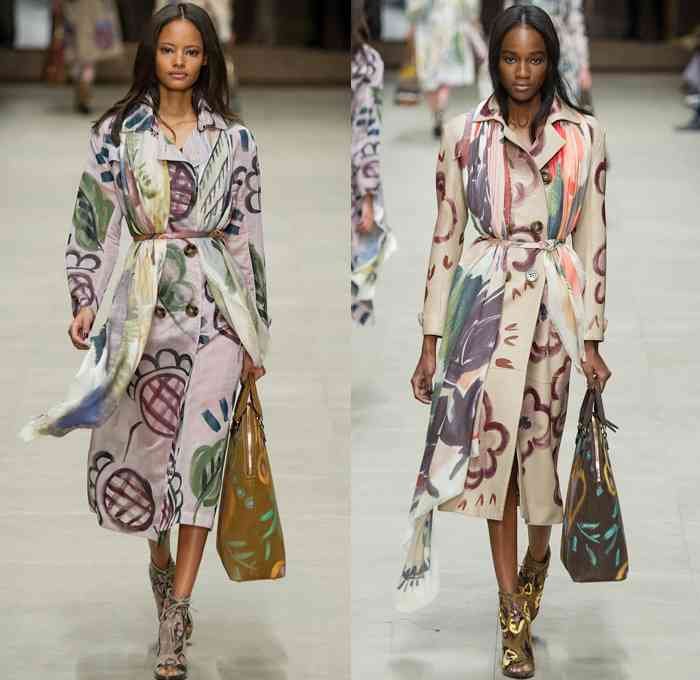 În plus, putem vorbi, de asemenea, de modelele abstracte puse pe fundal alb, și de trench-urile cream și paltoanele elegante. În ceea ce privește accesoriile, tocurile înalte cu printuri florale și alte modele pot fi remarcate ca unele dintre cele mai impresionante. Șalurile confortabile și călduroase, ochelarii de soare si eșarfele Burberry iconice sunt următoarele detalii importante întâlnite printre ținute.
