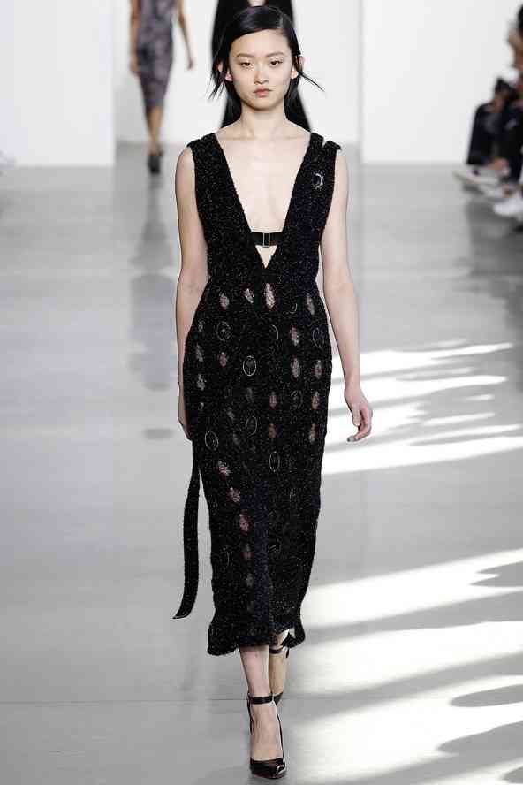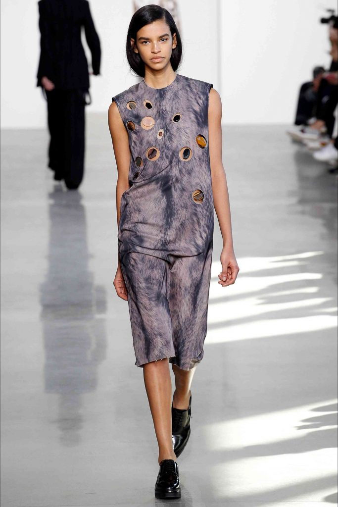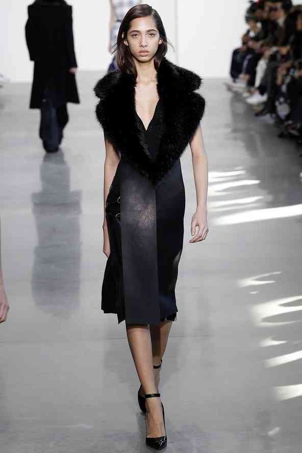 Combinarea minimalismului cu o alură sexy pare imposibilă, dar Francisco Costa o face foarte bine în show-ul său de modă pentru colecția Calvin Klein iarna 2017. Aspectul este centrat pe expresia insolentă a laturii feminine, sălbatică și tragică, cu robie și accente întunecate. Fiecare exces teatral și stereotip este purificat prin croielii sofisticate, prin tehnici de deconstrucție – haine care par aproape distruse – care exprimă o calitate elegantă și modernă. Un ton de senzualitate feroce este sugerat de utilizarea de blană, care este, de fapt realizată dintr-un fir de lână moale.
