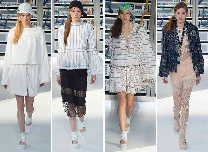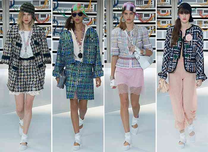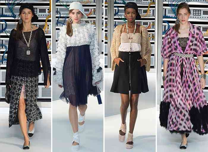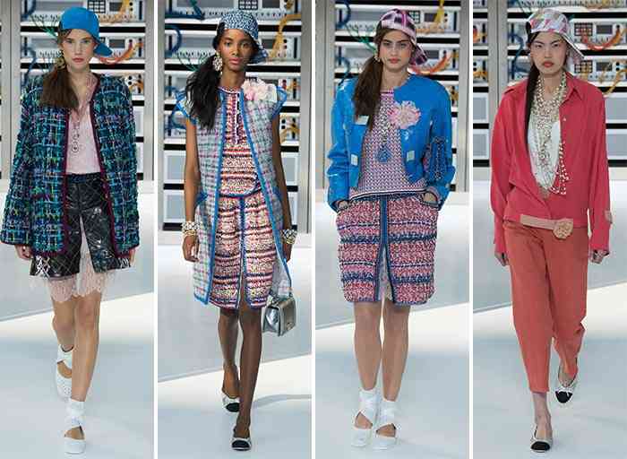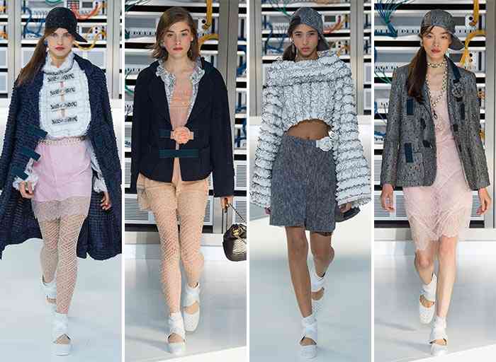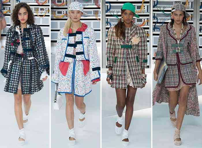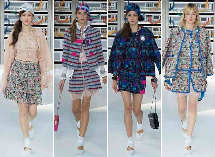 Colecția Chanel pentru primăvara / vara anului 2017 a ajuns chiar mai departe în misiunea sa de a prezenta modele dihotomice, combinând șepci de baseball purtate într-o parte cu costumele semnătură de tweed, Chanel. În cazul în care nu au fost asociate cu șepci de baseball, costumele au fost împodobite cu lanturi și coliere metalice, care într-un fel au arătat perfect pentru toate acele femei de afaceri care sunt foarte sofisticate, dar neconvenționale. În timp ce stilul high tech și stilul de stradă din gamă se întâlnesc de multe ori combinând modelele lor, cum ar fi costume de tweed, fuste și imprimeuri holografice, a treia gama de modele a oferit înflorituri delicate în primele două secțiuni.