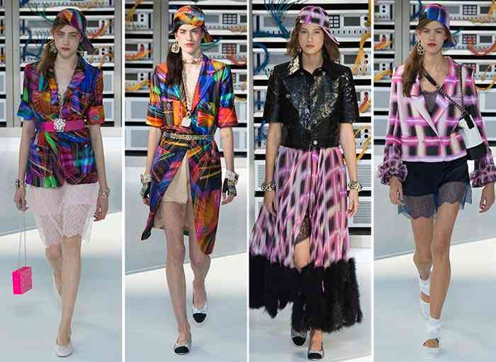Cu Grand Palais fiind locul de prezentare al colecției, modelele contrastante create de podoabele tehnologice ale lui Lagerfeld, ca și combinația dintre motivele familiare ale desenelor și modelelor crează un vibe mai futurist.
