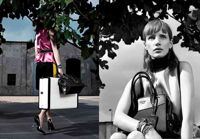 Liniile curate sunt observate atât în fotografii alb-negru cât și colorate ale rochiilor florale purtate cu sandale metalice și geantă acordeon. Geanta pare a fi foarte simplă și elegantă, dar are o poziție favorabilă de culoare pe părțile laterale. În timp ce rochia florală lansată în ambele fotografii este frumoasă, geanta acordeon este vedeta fotografiei, aproape la fel de mult ca Jessica Chastain în primele fotografii ale campaniei de croazieră Prada 2017.
