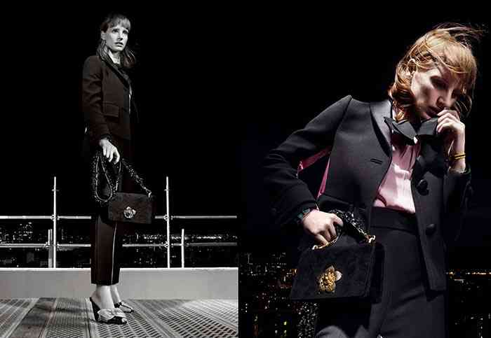 Expresiile de pe fața Jessicăi Chastain vinde fiecare piesă, oferind o mare emoție cu fața ei și limbajul corpului în fiecare fotografie. Tensiunea oferă o așteptare mai realistă a hainelor, fără să apară ca un catalog. În schimb, fiecare aspect prezintă o eleganță inexplicabilă într-un mod ușor de purtat pentru o casa de modă italiană cum ar fi Prada.
