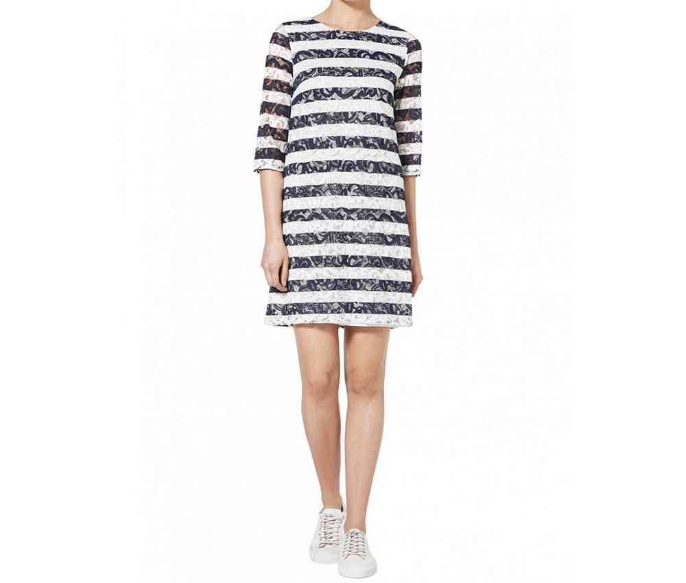 Dungi orizontale și verticale, dantelă brodată, stil modern cu indicii retro, în noua colecție de îmbrăcăminte Sisley pentru vara 2016!