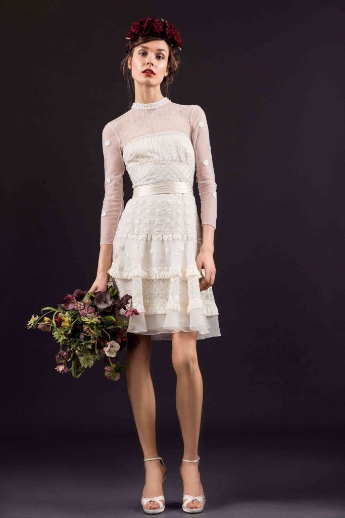 Coronițele florale și diademele cu siguranță au completat tema naturală a colecției de rochii de mireasă Temperley London pentru toamna 2017. Perle, cristale Swarovski, margele, tivuri dantelate și aplicații florale și broderii au jucat un rol imens în redefinirea decolteurilor după cum știm cu toții atunci când vine vorba de detalii.