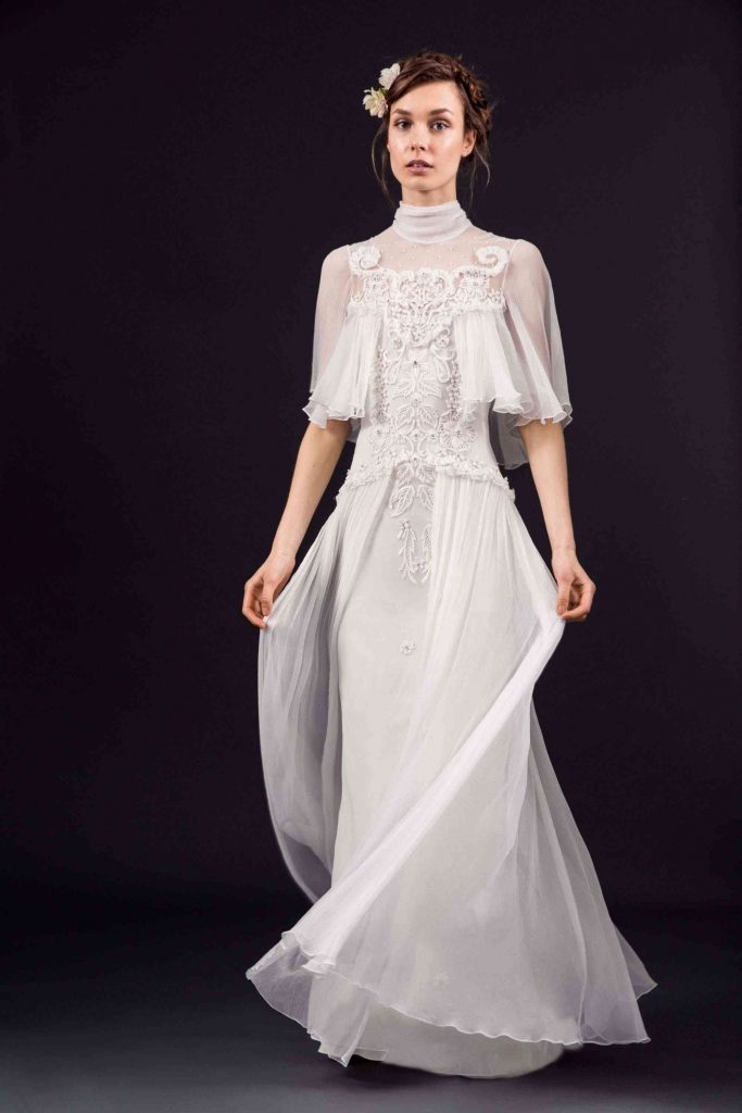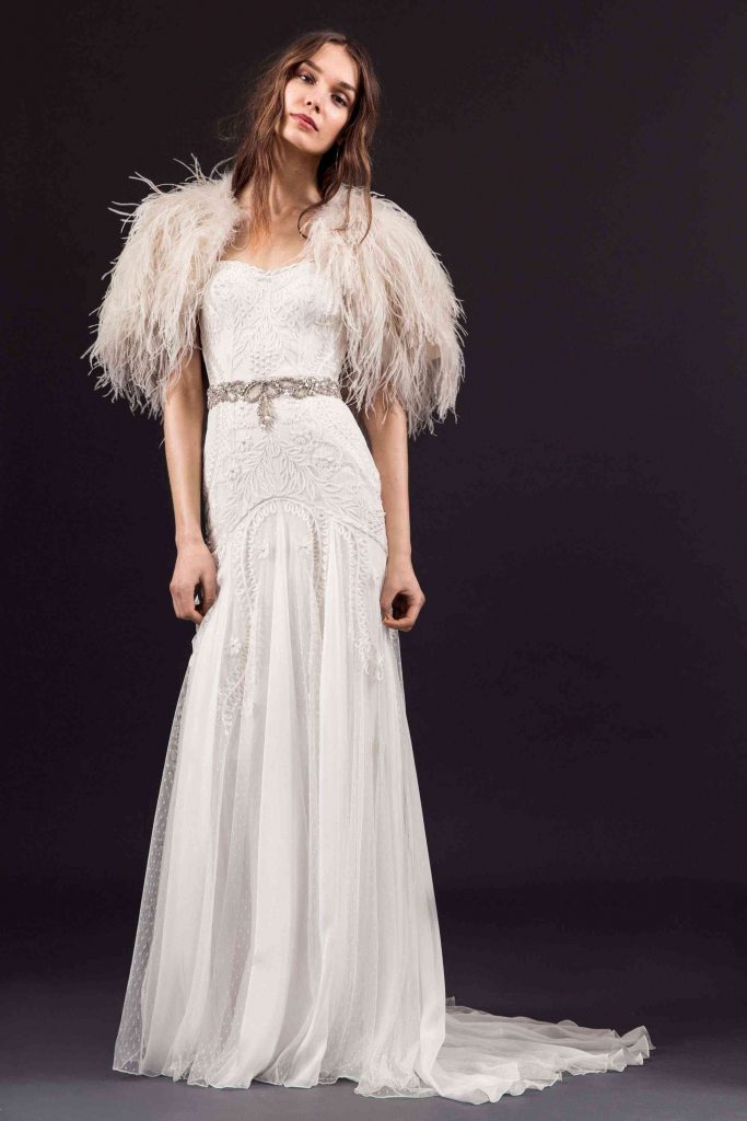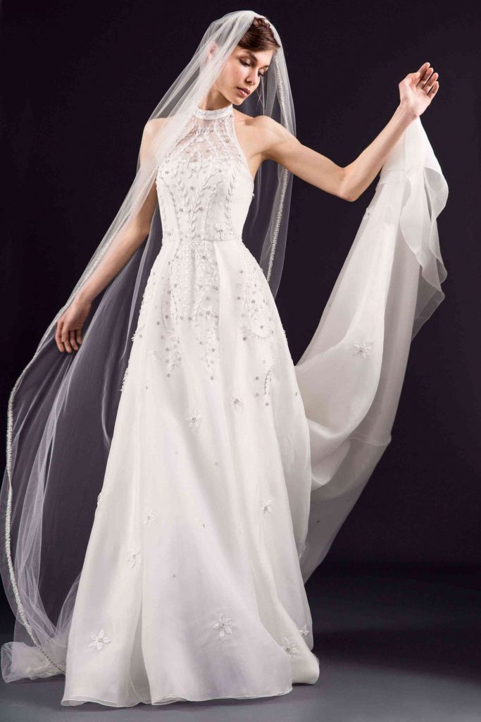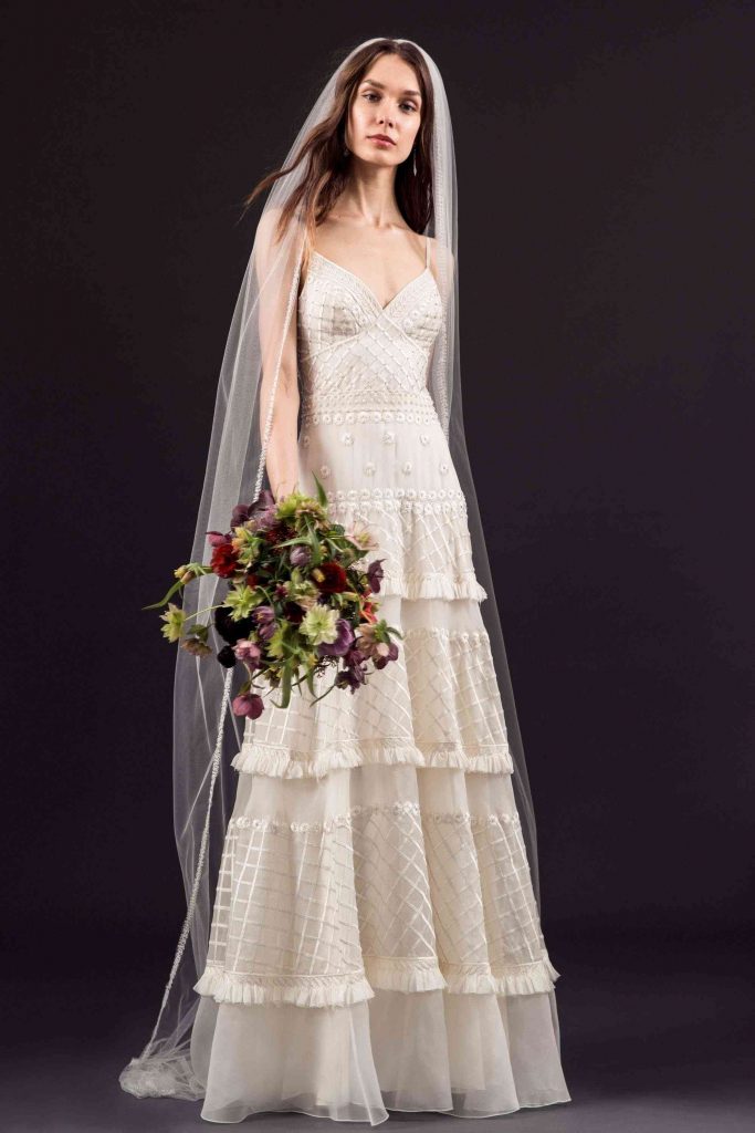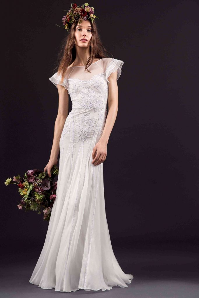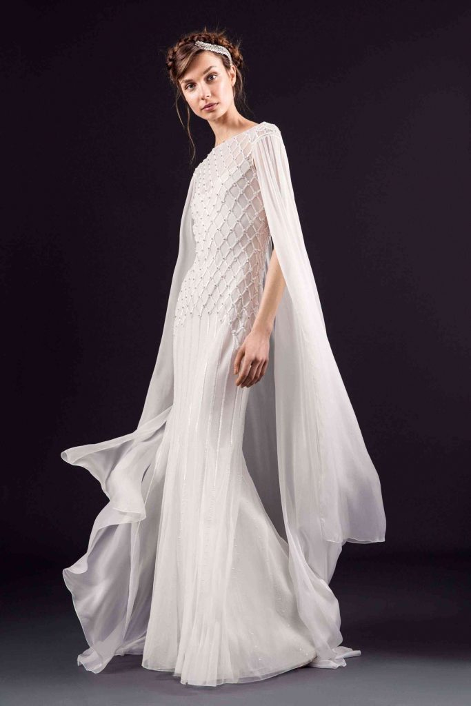 În timp ce rochii sirenă și rochii în linie A cu umerii structurați au atras din abundență motive de inspiratie Art Deco, florile cusute manual și modelele botanice texturale au înveselit întreaga colecție. Asemenea modele colorate poate nu întruchipează teme convenționale de toamnă, dar vor radia o încredere strălucitoare și o eleganță cool la orice ceremonie de nuntă în aer liber târziu în septembrie.