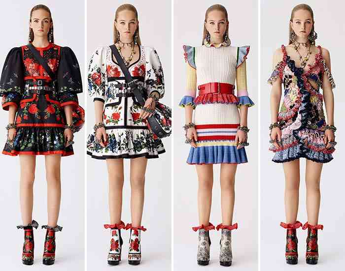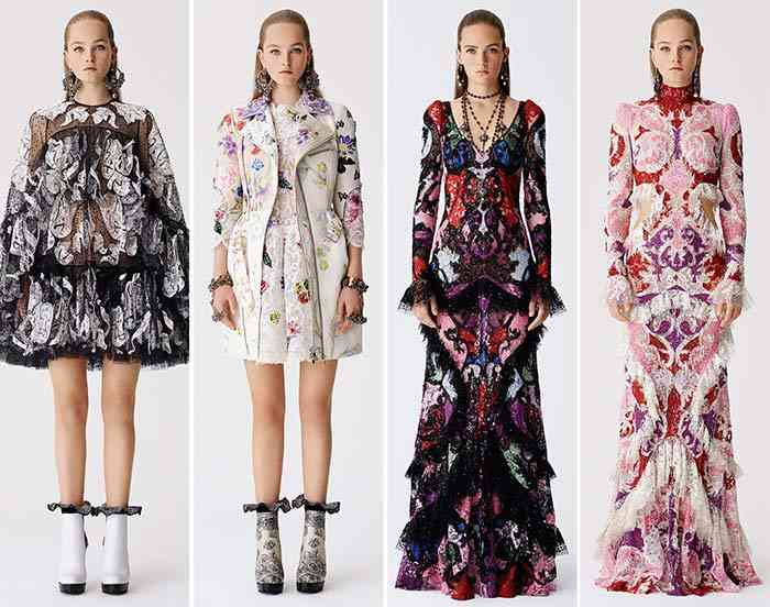 În timp ce înaintăm în colecția de stațiune Alexander McQueen 2017, întâlnim tivuri și rochii dramatice, în timp ce paleta liniei și florile revitalizează ceea pentru ce interioarele artistice britanice sunt în principal renumite.