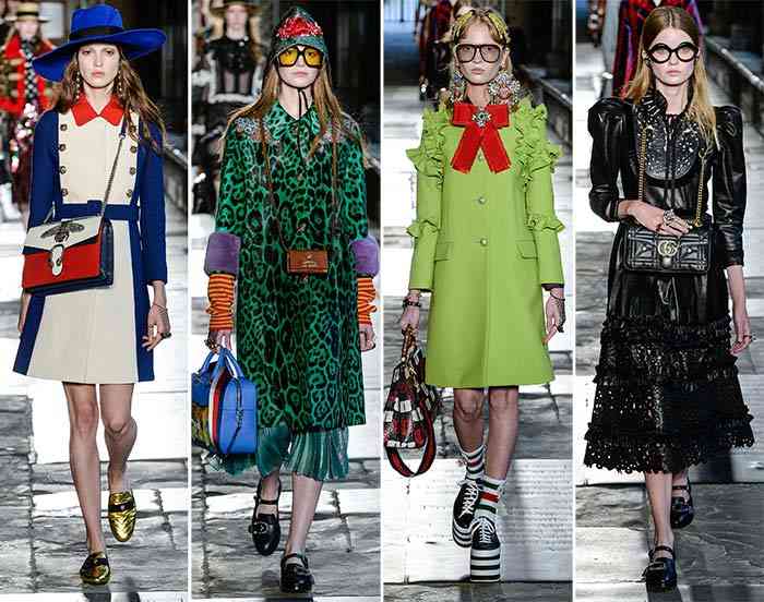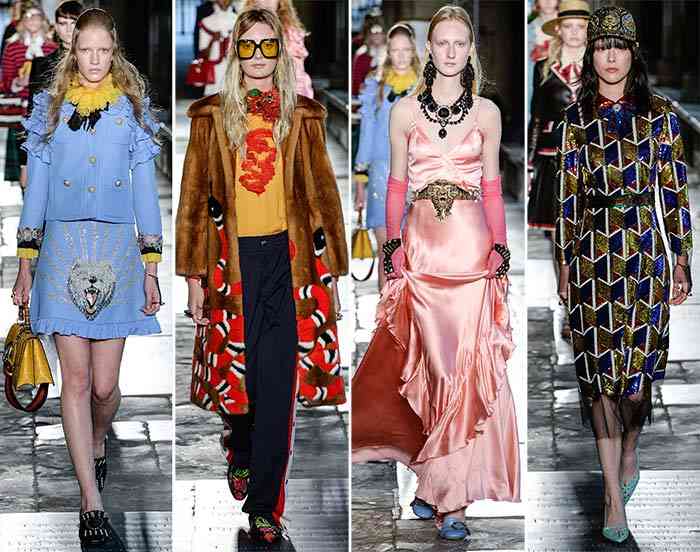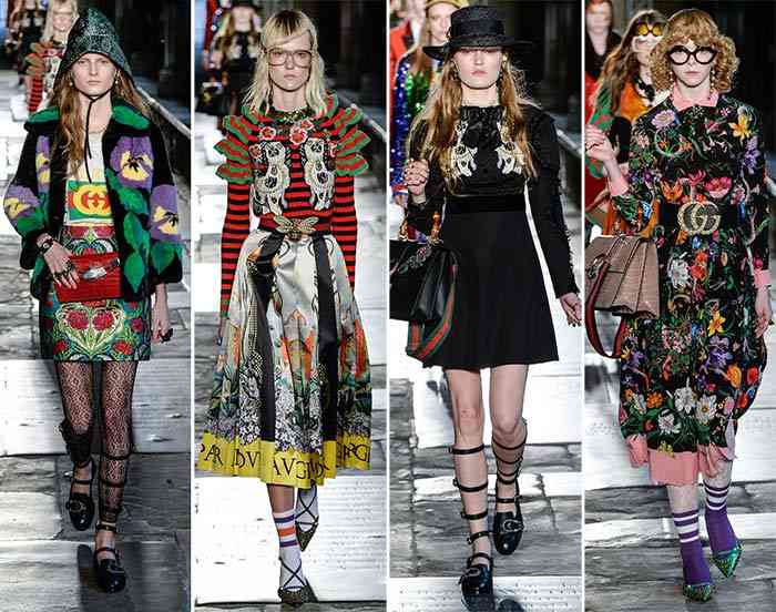 Sursele de inspirație pentru colecția de stațiune Gucci 2017, păreau că se întind peste mai multe epoci diferite, cu tartan traditional, fuste cu inspirație din anii ’60, rochii cu inspirație din anii ’70 , rochii din mătase, care au fost abundente între anii ’70 și anii ’90 – și asta pentru a numi doar câteva. În cadrul fiecărei ere, au fost prezente mai multe stiluri diferite pentru oameni diferiți. Se pare că Alessandro Michele nu s-a putut lipi de o singură idee, așa că s-a inspirat din toate.