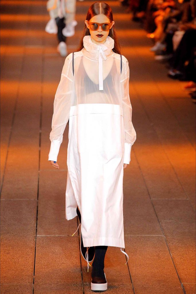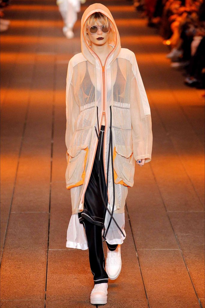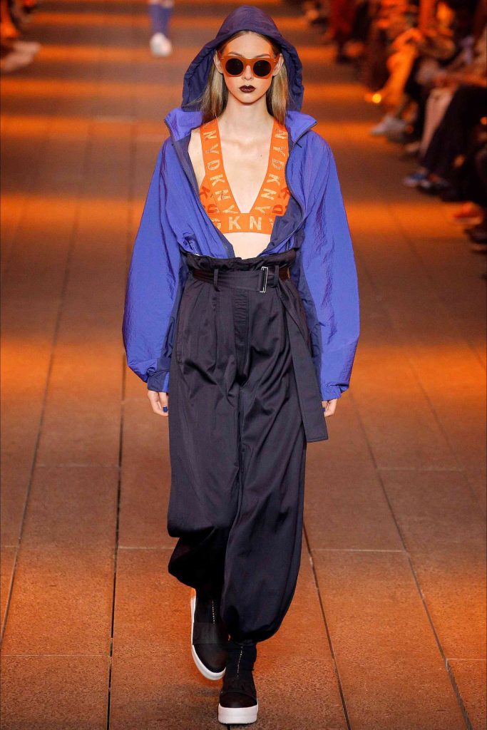 Maxwell Osborne și Dao-Yi Chow proiectează DKNY în viitor, reinterpretând codurile brand-ului și concentrându-se pe un aspect urban care încorporează elemente de sport, de utilitate și de stradă, transformând-ul într-o viziune contemporană, cu accente inovatoare și experimentale. Transparență tehno, stratificare, volume supradimensionate, definesc un dulap metropolitan purtat de un trib energetic, care transformă podiumul de prezentare într-un loc utopic.