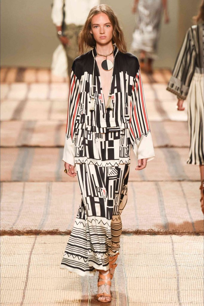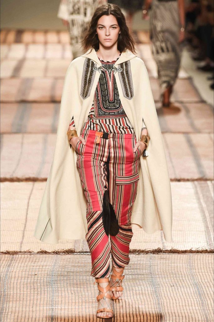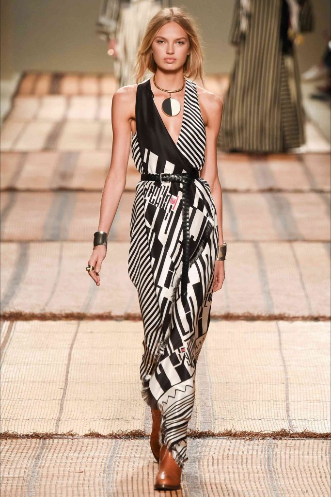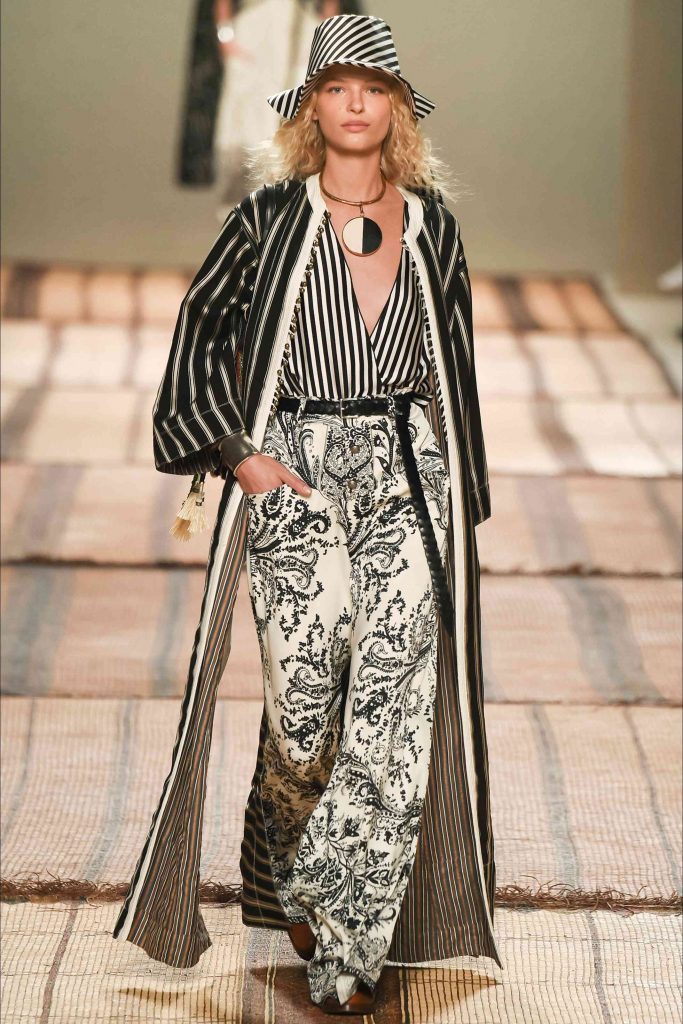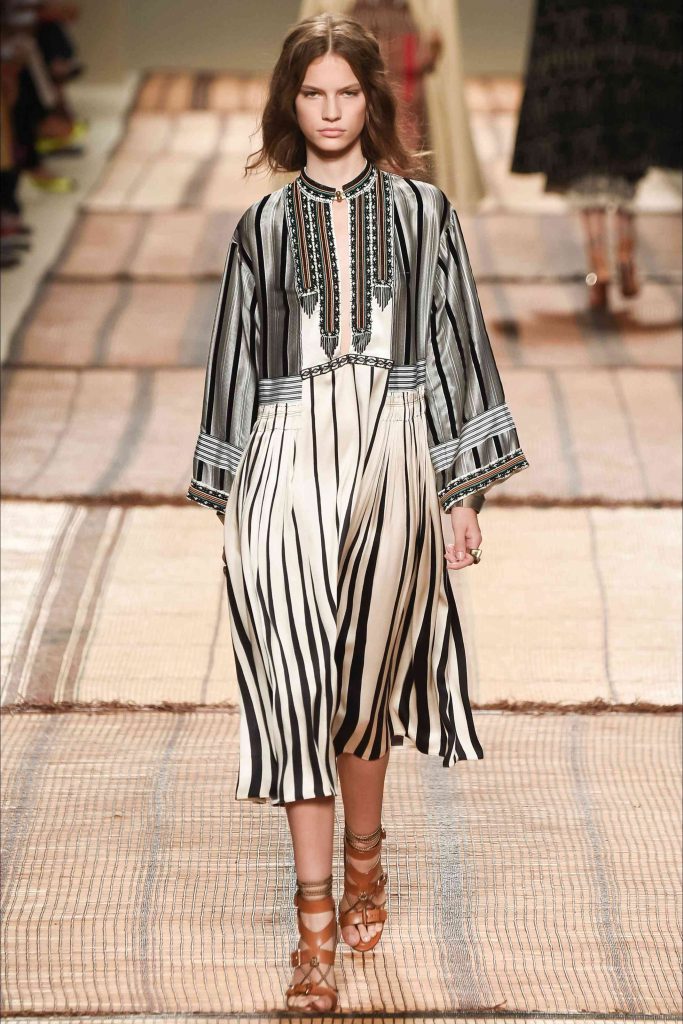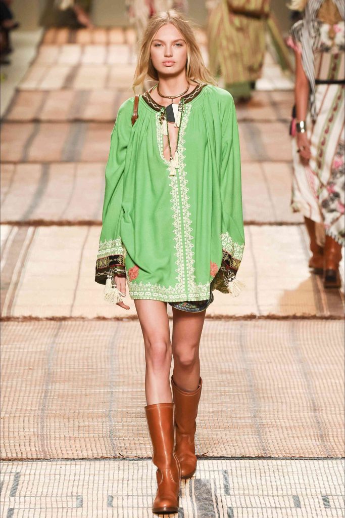Modelele, precum călătoriile neobosite invadează pista Etro. Pentru această colecție, Veronica Etro a vrut să reinterpreteze moștenirea brandului în lumina de astăzi. Dedicată triburilor urbane, colecția Etro primăvară-vară 2017, este un amestec cu un suflet pop, unde chimonourile cu dungi, capele, rochiile mici boeme, caftanele lungi și poncho-urile etnice coabitează, și au gust de libertate și aventură.