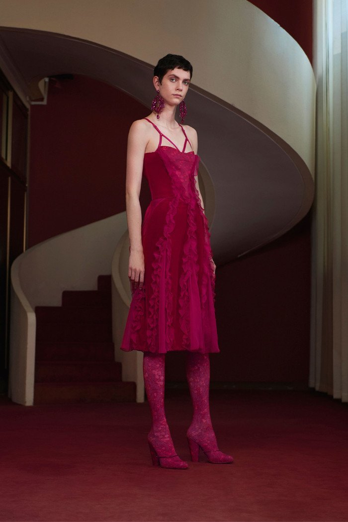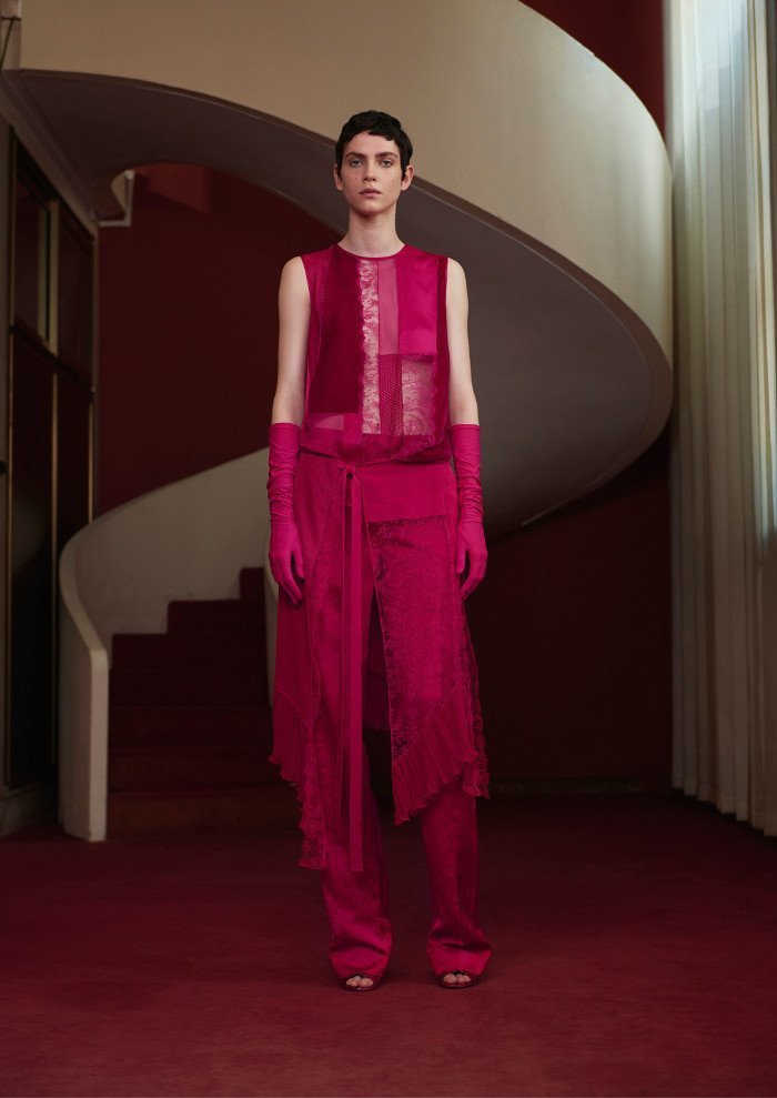 Desenele monocromatice vopsite în nuanța fuchsia fierbinte au fost punctul culminant al colecției. Culoarea fuchsia din colecția Resort 2018 a fost rezervată pentru modelele direcționale. Givenchy ne-a oferit milioane de moduri de a purta cea mai tare culoare din sezon.