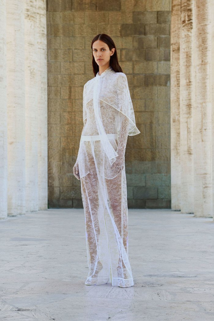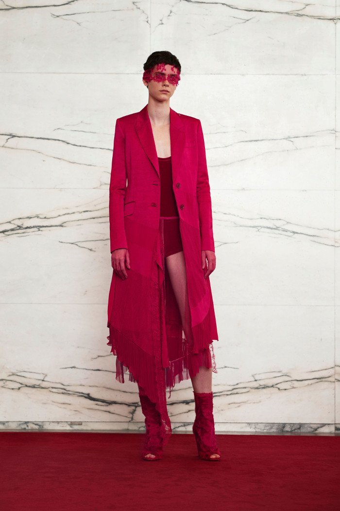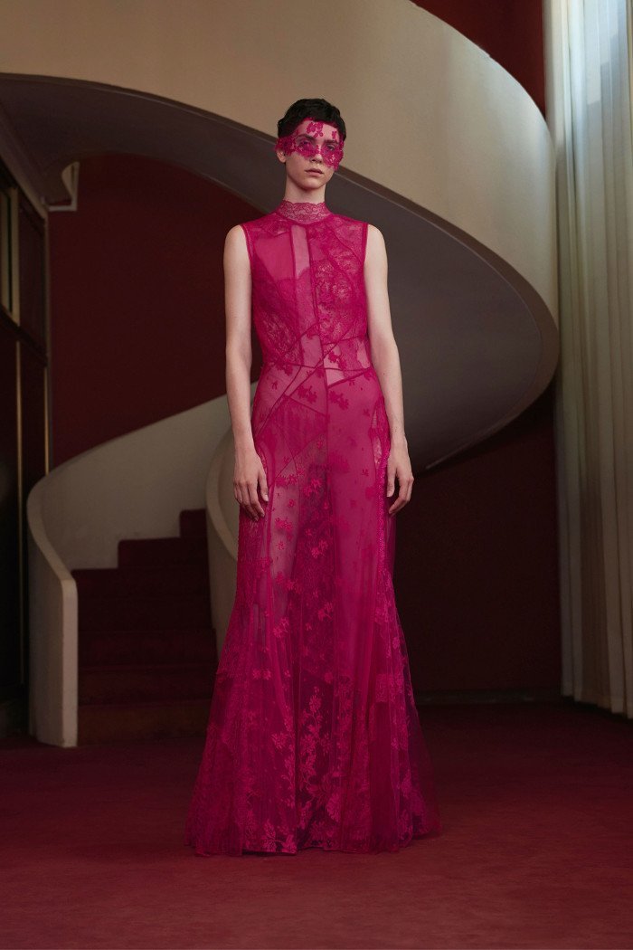 Întreaga colecție a prezentat modele monocromatice structurate predominant colorate în alb, fuchsia și albastru regal. Judecând după desene sau modele, este sigur să spunem că tendința hainelor transparente care a fost populară în ultimul timp nu are nicio intenție de a dispărea în curând.