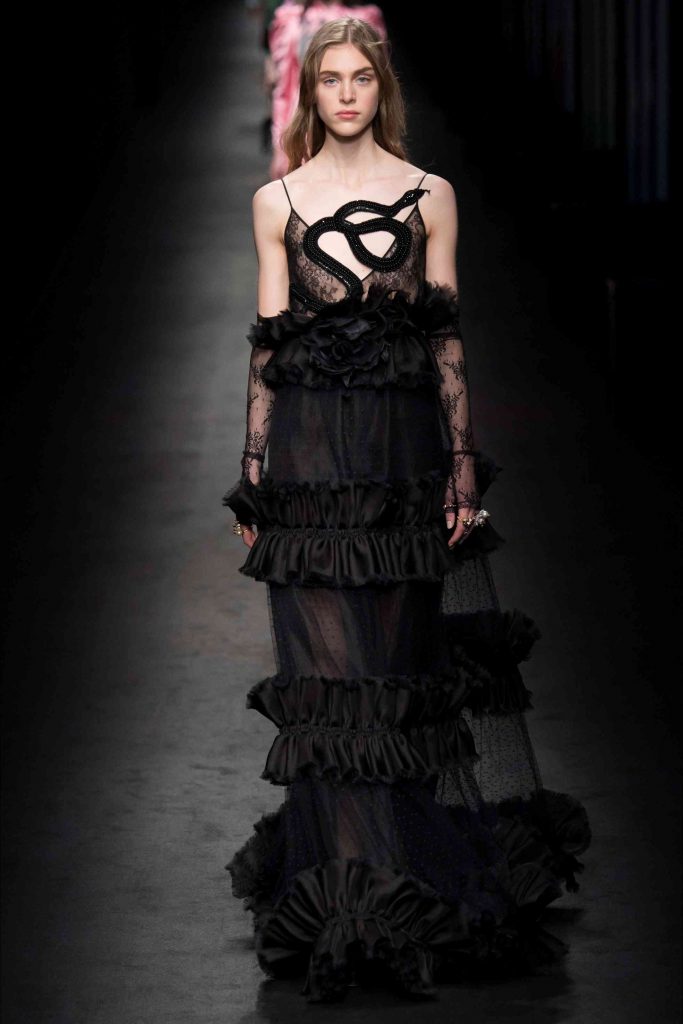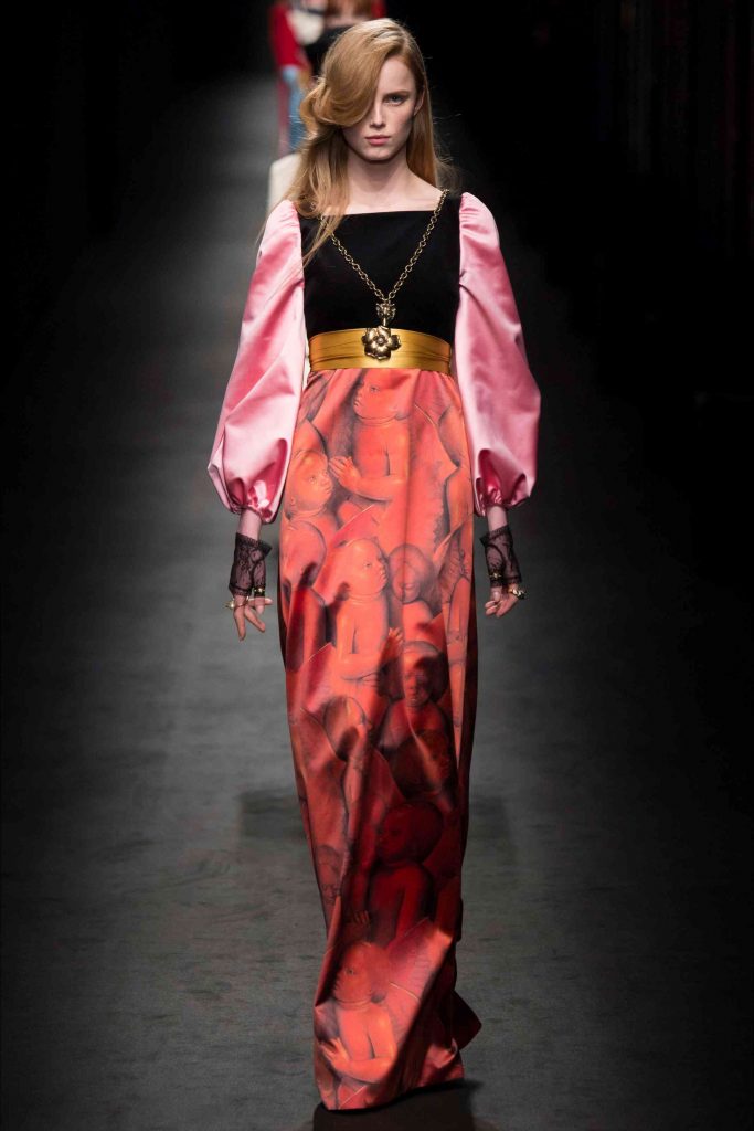 Colecția actuală este o stivă de elemente, viziuni personale, care sunt decontextualizate, întrerupte și reactivate. La fel ca moda – la urma urmei – care se naște din amestec și amestecarea într-un mod dezordonat și eterogen. Asemănător cu o mașină a timpului, Michele aduce noblewomen pictate de Bronzino la cartierele obscure din New York, apoi la atelieruri couture pariziene și la Roma, la sfârșitul anilor ’70, în numele unei renașteri, o revoluție care cucerește hainele: pelerinele vin într-o versiune trompe l’oeil, jachetele din piele au un simț renascentist, rochiile dispun de siluete couture, blana capătă o notă pop și rochiile de seară lungi au mâneci umflate. Cel care l-a ajutat pe Michele în această călătorie creativă, este artistul multi-media, Trouble Andrew, alias Gucci Ghost, care personalizează unele accesorii și piese prin vopsirea prin pulverizare, într-un mod în care astfel de scrieri devin un ornament, un detaliu prețios și unic, o punte de legătură între lux și arta stradală. La urma urmei, nu este de moda de azi exact acest lucru?