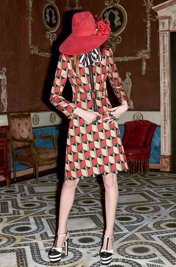 În cadrul colecției, observăm haine de blană în culori vii. Vedem fuste midi plisate mai cuminți cu inspirație din secolul al 18-lea. Rochiile de seară de tul evocă un aspect de zână, în timp ce sclipiciul, broderia și mozaicul au propriile lor locuri de pe scenă. Întâlnim unele combinații de culori destul de interesante, roșu, verde și alb, asociate cu roz. Rochiile din piele de căprioară cu talia înaltă alungesc silueta, mai ales atunci când sunt cuplate cu cizme. Rochiile prezintă o mulțime de volane și panglici minunate, decolteuri și lungimi care variază de la midi la mini.