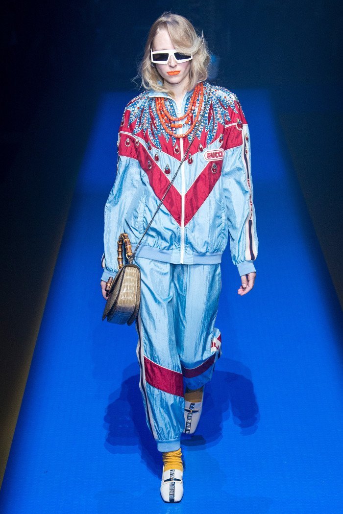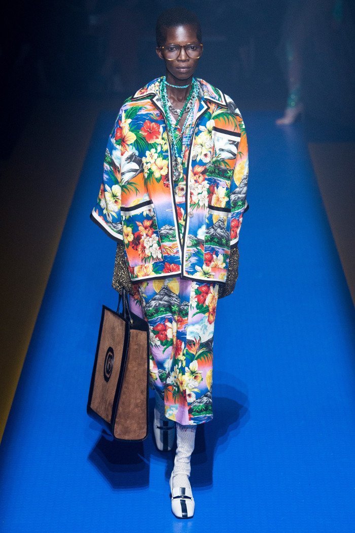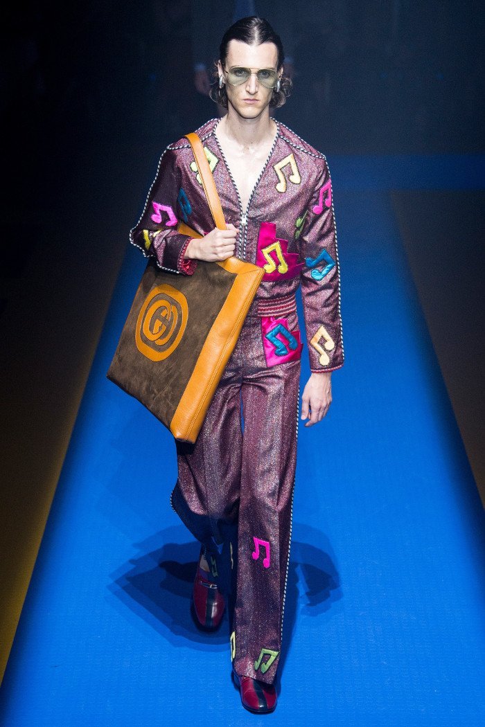 Colectia Gucci primavara-vara 2018 a fost o experienta extrema si contradictorie din partea publicului din Milano. Ansamblurile complicate au indicat ca Alessandro Michele nu va renunta la estetica sa excentrica curand. La urma urmei, veniturile ridicate ale lui Gucci sunt in favoarea lui.