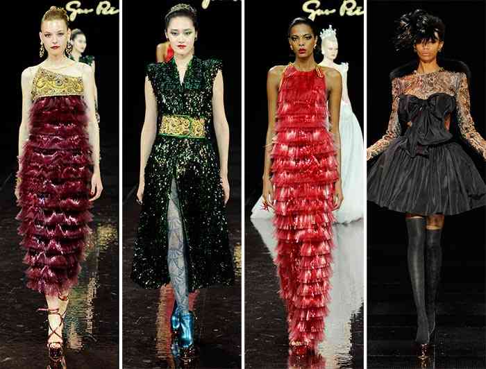 Cei care au crezut că ar fi fost imposibil să se întreacă pe sine în crearea a ceva la fel de generos, se pot gândi încă o dată. Grație bogăției texturilor, desenelor și materialelor, colecția Guo Pei Couture pentru toamna / iarna 2016-2017 este fabuloasă, cu broderiile sale de aur, lucrul manual și siluetele dramatice, care s-ar putea să nu fie la fel de valoroase ca și cele 20.000 de cristale Swarovski , dar, în ceea ce privește opulenta, sunt la fel de glorioase.
