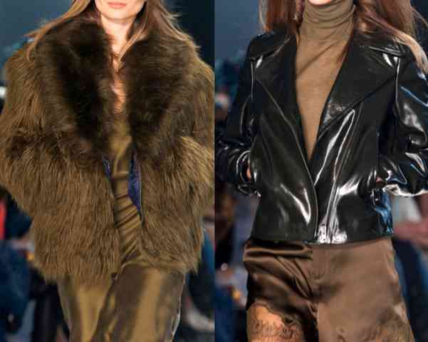 În ceea ce privește amprentele, au fost folosite într-un mod foarte modest în această linie, doar decorarea rochiei maxi în dungi delicate, salopeta chic cu printuri sofisticate de animale în unele tușe abstracte. La restul ținutelor s-a păstrat aspectul alb-negru, elegant, precum și detalii, materiale și forme elegante. Astfel, colecția H & M pentru toamna / iarna 2014-2015 a adus o mulțime de atingeri de transparență, mătase fină, piele, blană și materiale strălucitoare, folosite pentru aceste rochii de petrecere și bluze transparente care completează pantalonii de piele negri.