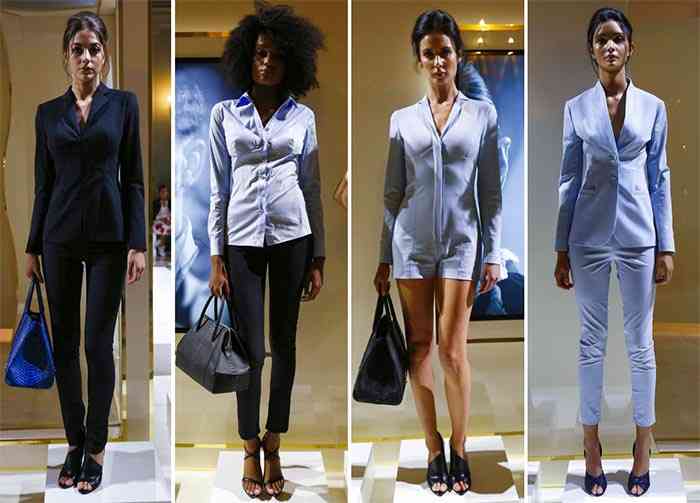 Accesoriile includ clutch-uri cu paiete, genți de mână cu imprimeu de animale, pălării frumoase și pantofi. Întâlnim tocuri, stiletto și sandale în culori luminoase și subtile pentru a merge cu fiecare aspect. Compleurile sunt bine croite, în culori frumoase. Manșete și gulere au un efect minunat. O altă bluză frumos împodobită cu un decolteu generos este combinată cu pantaloni largi într-un albastru de vis.