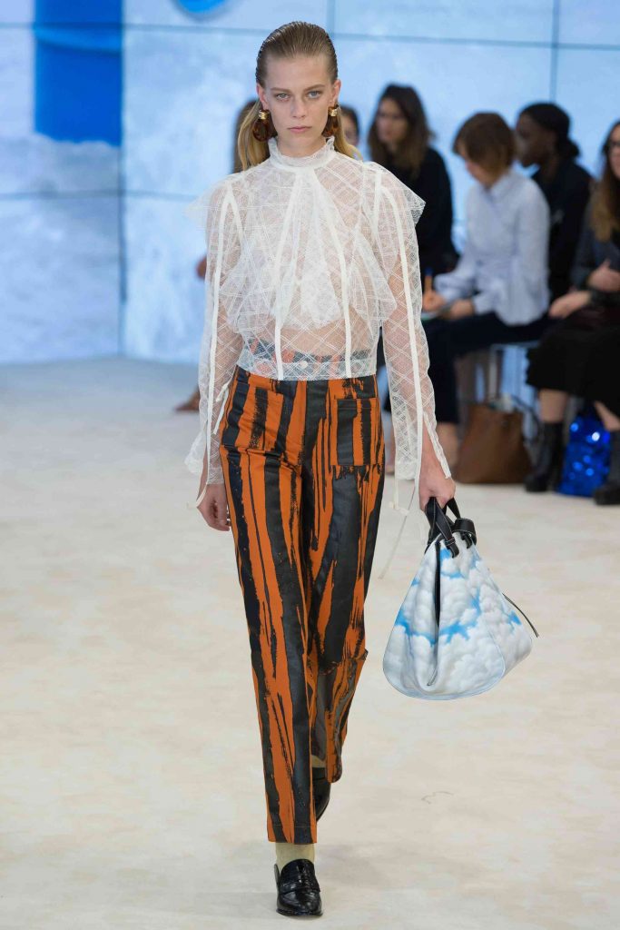 Interesant, colecția Loewe pentru primăvara / vara 2017, s-a jucat cu țesături transparente (aproape orice colecție de la Fashion Week Paris, a prezentat cel puțin o piesă transparentă), dar întotdeauna păstrând siluetele sale modeste în minte.