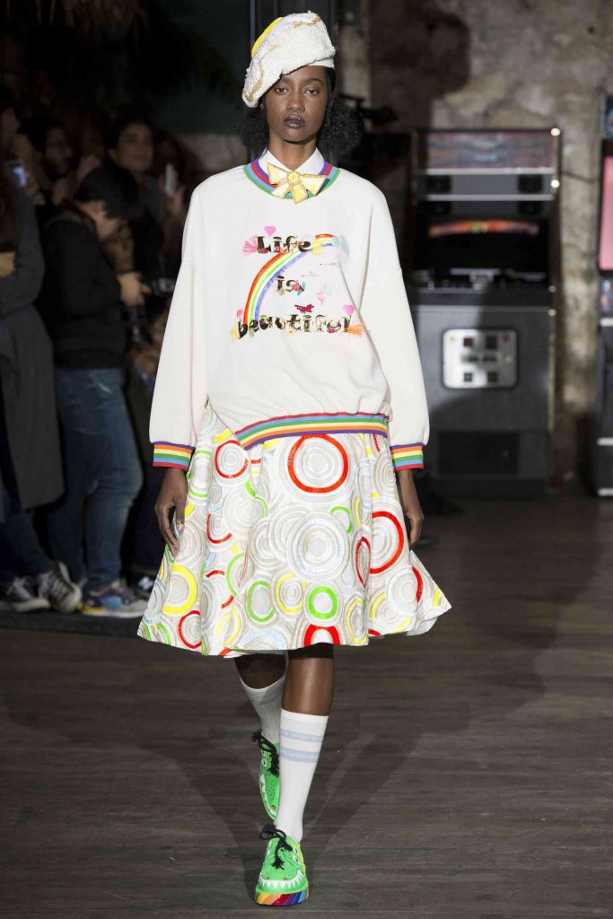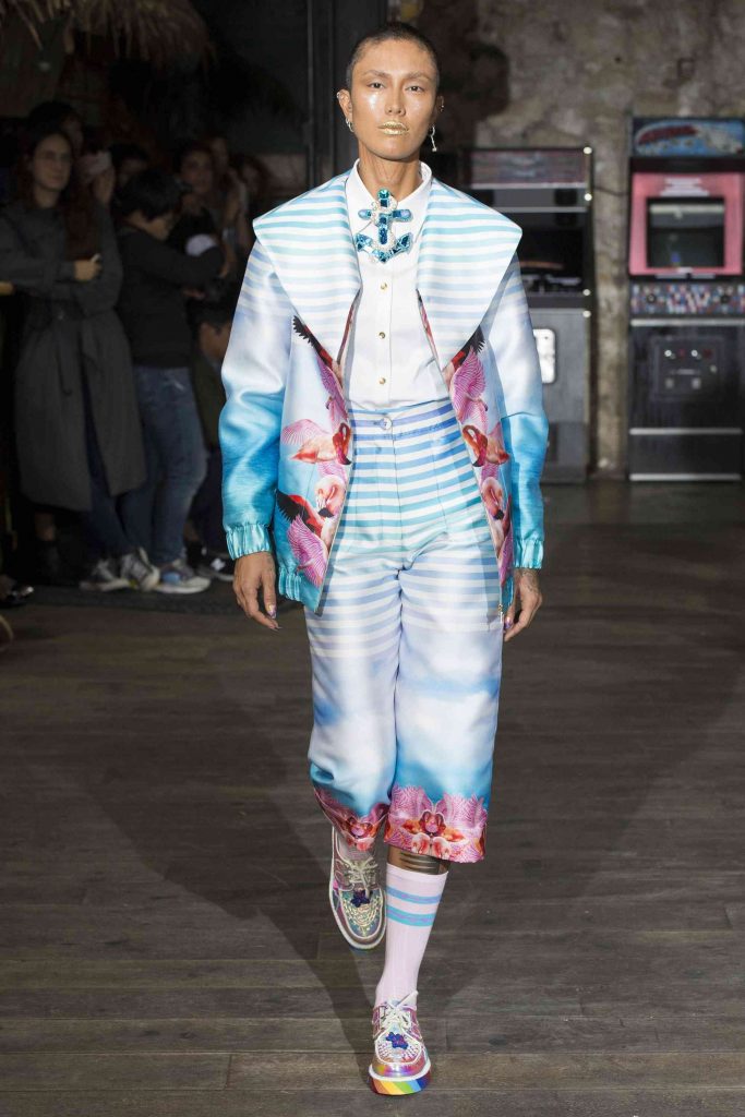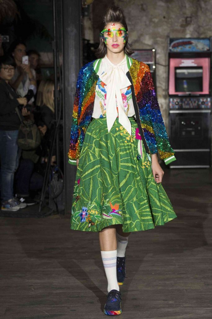Cu păsări și curcubee care încadrează întregul spectacol și vibrații pozitive, colecția Manish Arora pentru primăvara / vara 2017 a fost în general extrem de jucăușă și ireverențioasă, cu motto-ul lui „Life Is Beautiful” în mod clar omniprezent în fiecare dintre propunerile din gamă. Modul său sarcastic de inspirație Pop Art este, de asemenea, tradus în sensul său cel mai pestriț, cu fuste balon care domină scena, dar și piese de inspirație nautică și modele exotice.