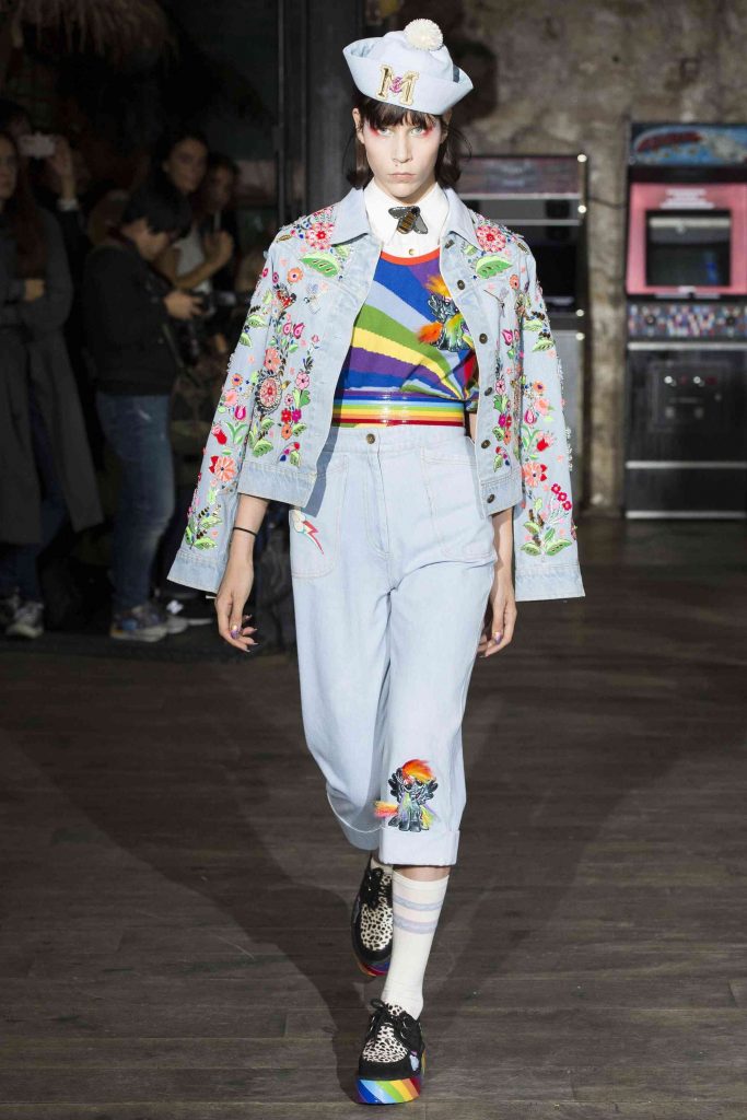 Anumite fuste, pantaloni și jachete sunt împodobite cu modele flamingo, papagali, căluți, pește și fructe, motive multicolore și imprimeuri geometrice abstracte.