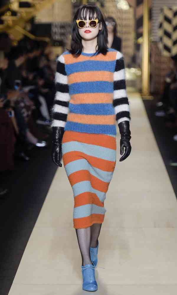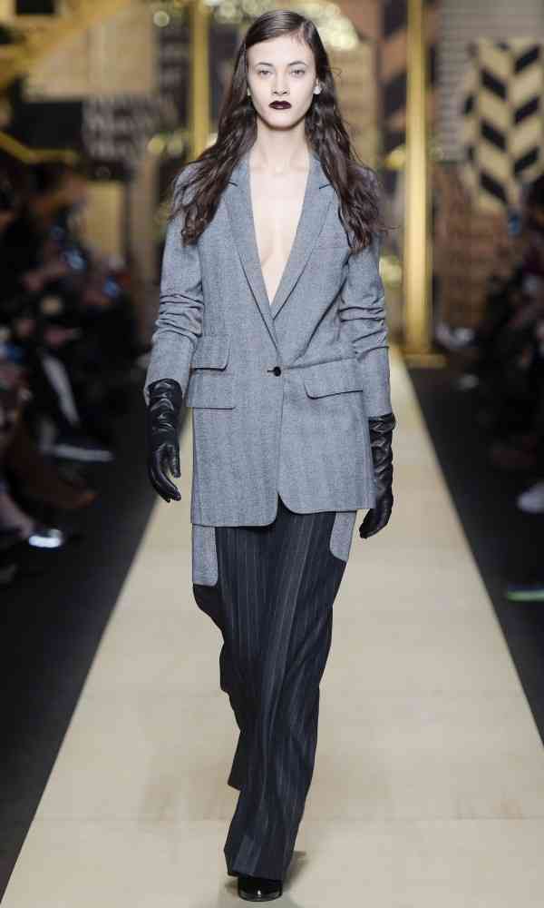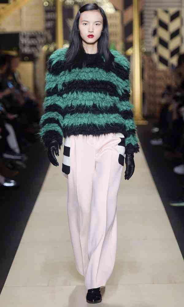 Există toată energia anilor ’40 din Berlin, în colecția Max Mara pentru iarna 2017, inspirată de constructivism, dadaism și bauhaus. Piesele pe care le-am văzut pe pistă sunt paltoane asociate cu fuste drepte sau pantaloni largi, și topuri tricotate cu dungi zigzag cu paiete aurii și argintii.