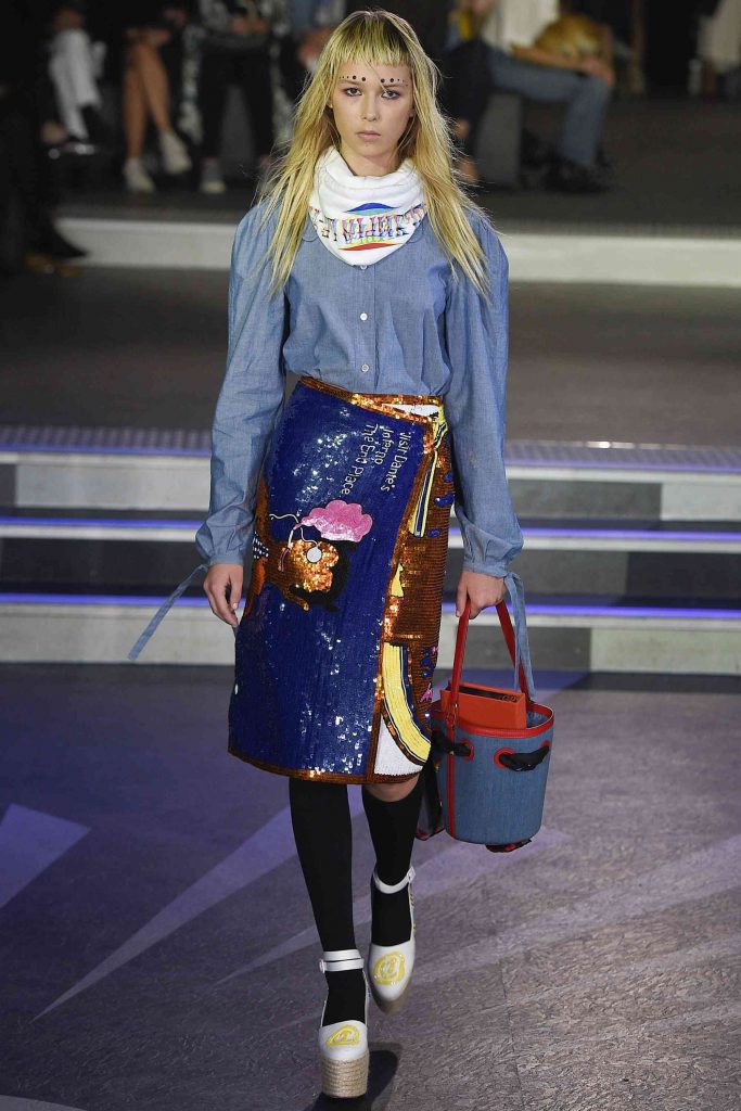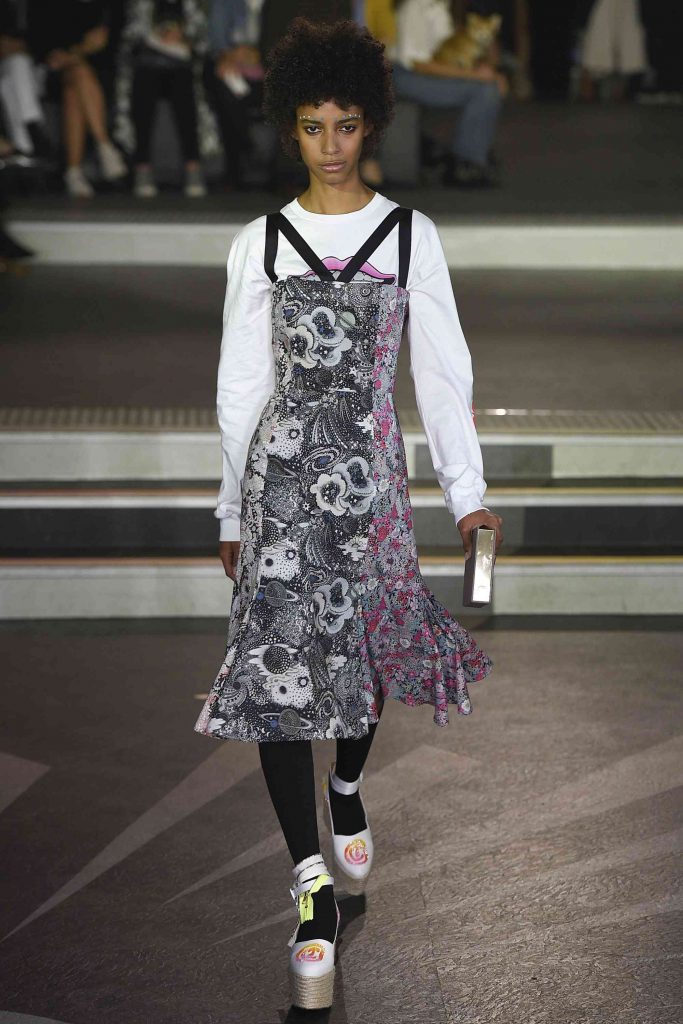 În mai multe ținute diferite, putem întâlni lucrările lui Tadanori Yokoo, un pictor japonez foarte talentat, ilustrator și designer grafic. Unul dintre cele mai bune aspectul din colecția Olympia Le-Tan pentru primăvara/vara anului 2017 au fost o rochie-pulover prinsă cu o centură drăguță pe talie.