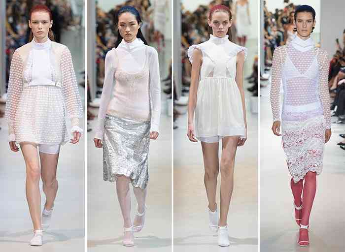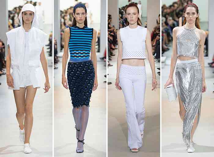 La fel de interesantă este paleta de culori din colecția Paco Rabanne primavara / vara 2017. Julien Dossena a optat în primul rând pentru articole de îmbrăcăminte alb-negru, așa cum se vede în majoritatea spectacolelor de la Paris Fashion Week. Apoi, pentru a crea un fel de dinamism din altă lume, a adăugat o atingere de culoare de un albastru deosebit, ceea ce a făcut în mod inevitabil totul să arate chiar mai futurist, împreună cu piesele metalice din gama lui.