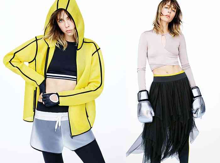 Simple și convenționale, toate piesele pot fi cu ușurință etalate chiar și în afara sălii de sport, atât în timpul zilei cât și al nopții. Paleta de culori este fabuloasă, cu tonuri de nud și pastel, cu singura excepție a unui hanorac galben strălucitor și o jachetă metalică, toate hainele sunt dotate cu siluete casual chic.