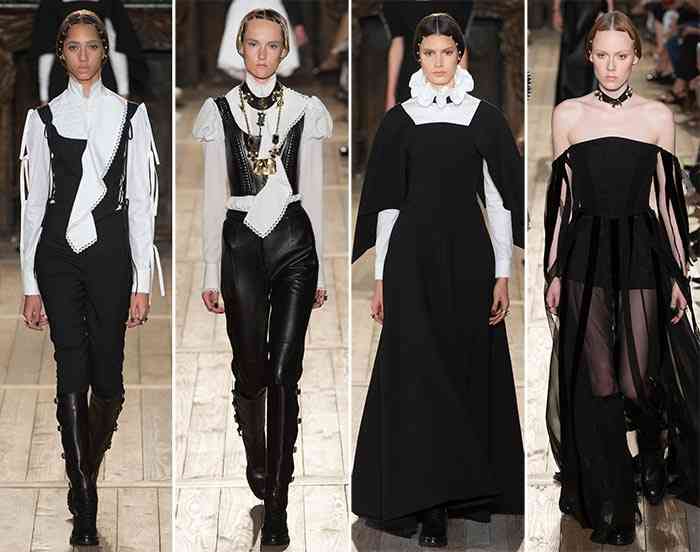 Pe parcursul prezentării, am fost tratați cu interpretări moderne ale modei elisabetane pentru prințese și prinți, preoți și curteni, un aspect comun pe pista cu o mulțime de corsaje, mâneci bufante și chiar robe clerice.