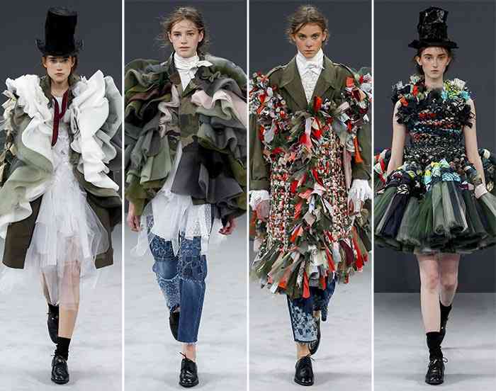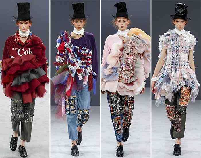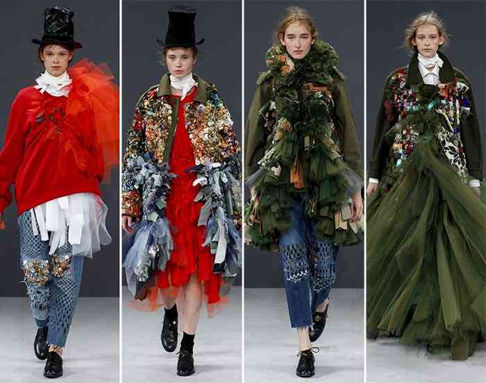 Tema de epocă, continuă să fie o referință puternică, aici văzută în special în accesorii ( uita-te la aceste pălării!) și paltoane. Un motiv retro-futurist ne arată ce personajele lui Charles Dickens purtau, probabil, într-o Londra mai puțin cețoasă, în care modelele multi-colorate și texturile grele sunt în căutare.