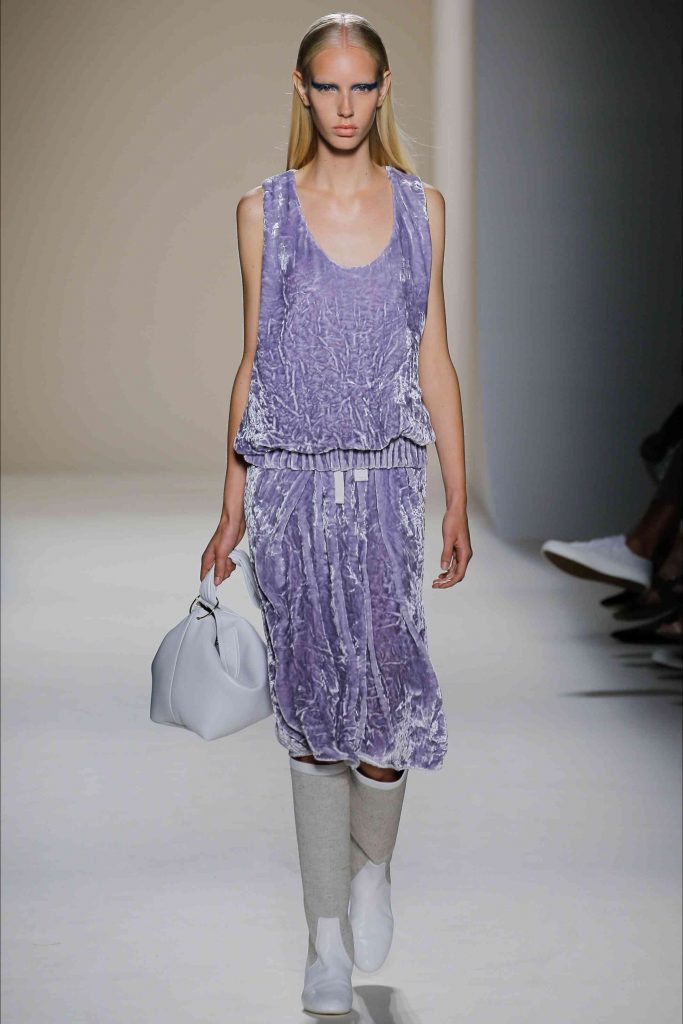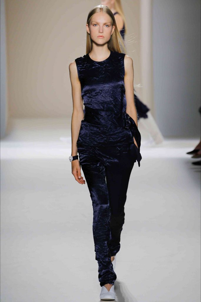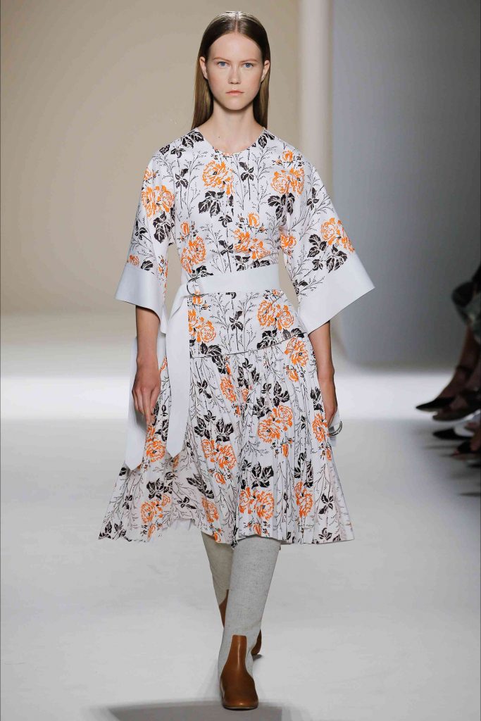 Articolele de îmbrăcăminte, rămânând în același timp ancorate la versatilitate, sunt ample, atenuate prin utilizarea de țesături fluide și luminoase, îmbunătățite printr-o paletă de culori proaspătă și vibrantă, cu adăugarea unui material cu imprimeuri florale. Un rezultat convingător pentru un designer cu multiple fațete, ca Victoria Beckham.