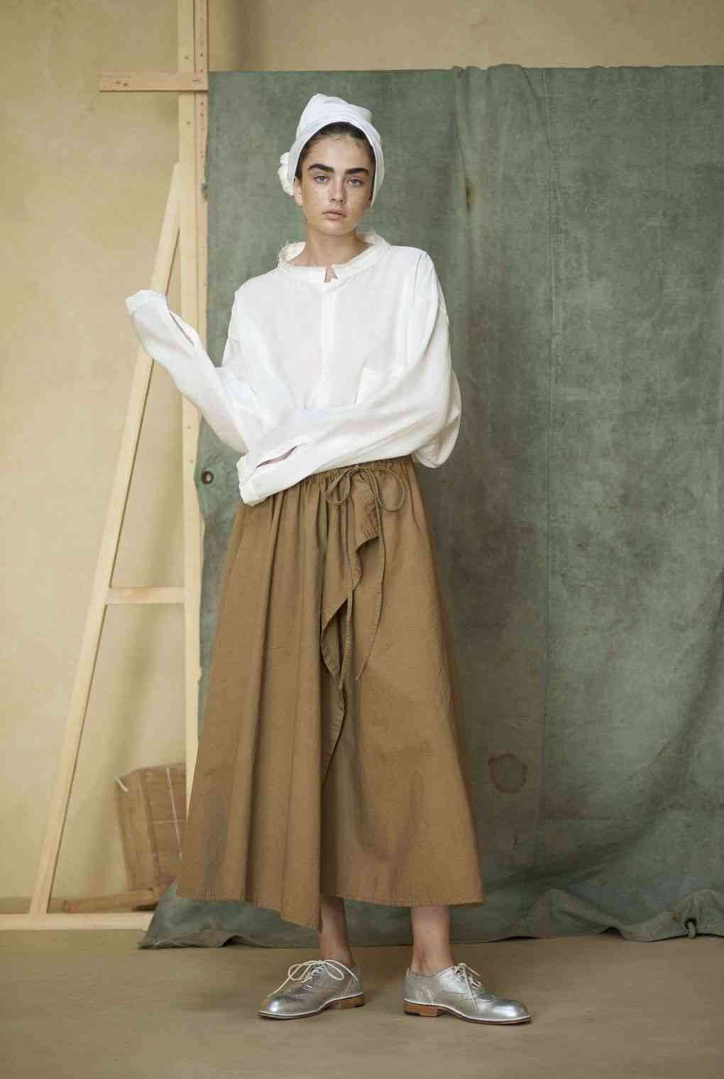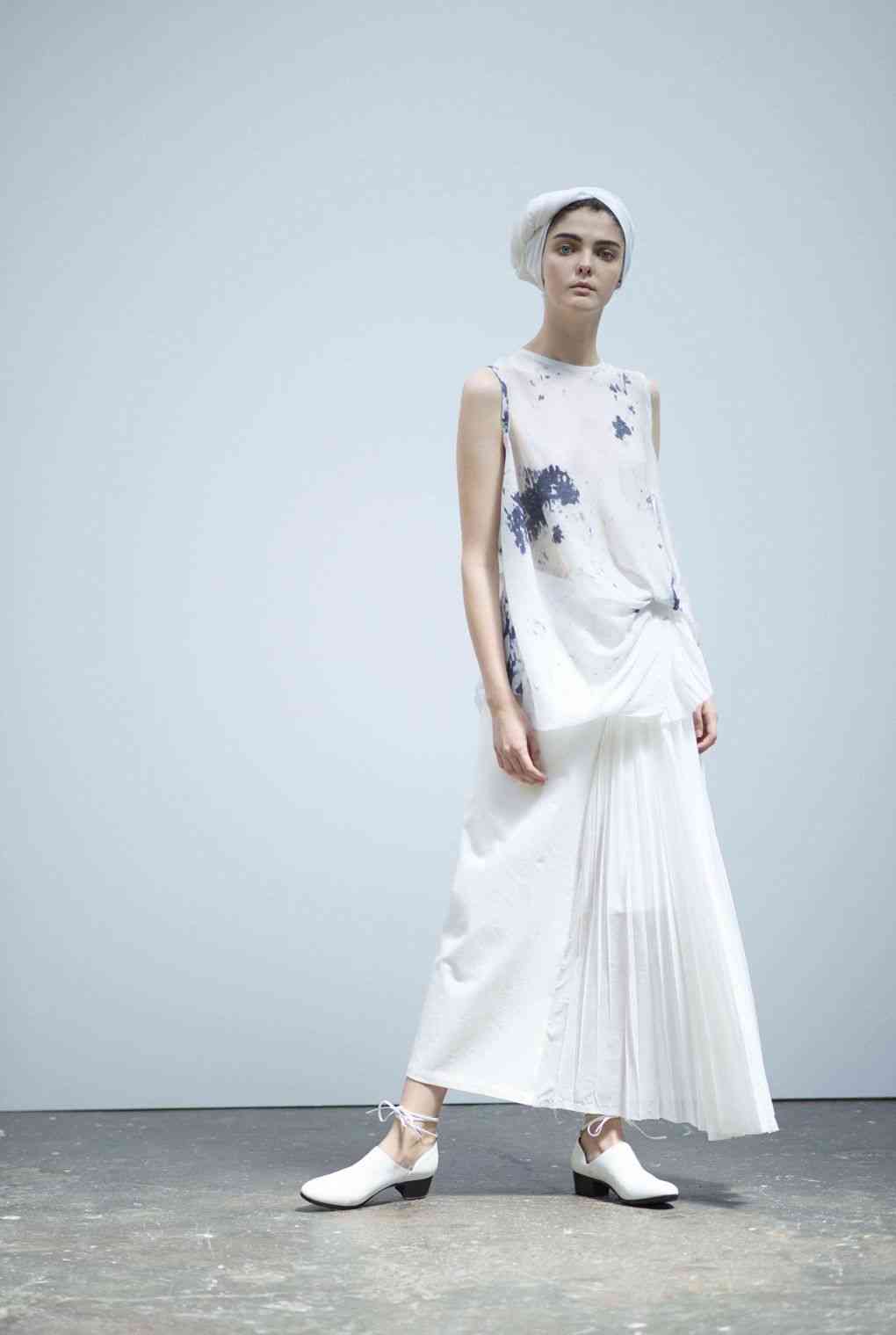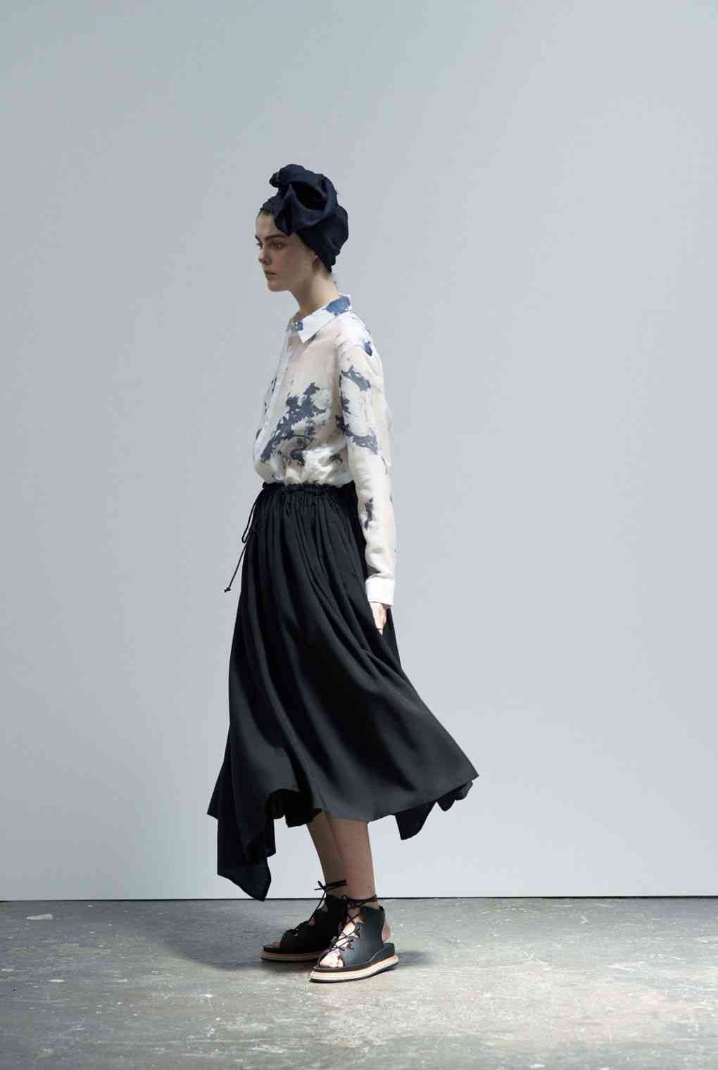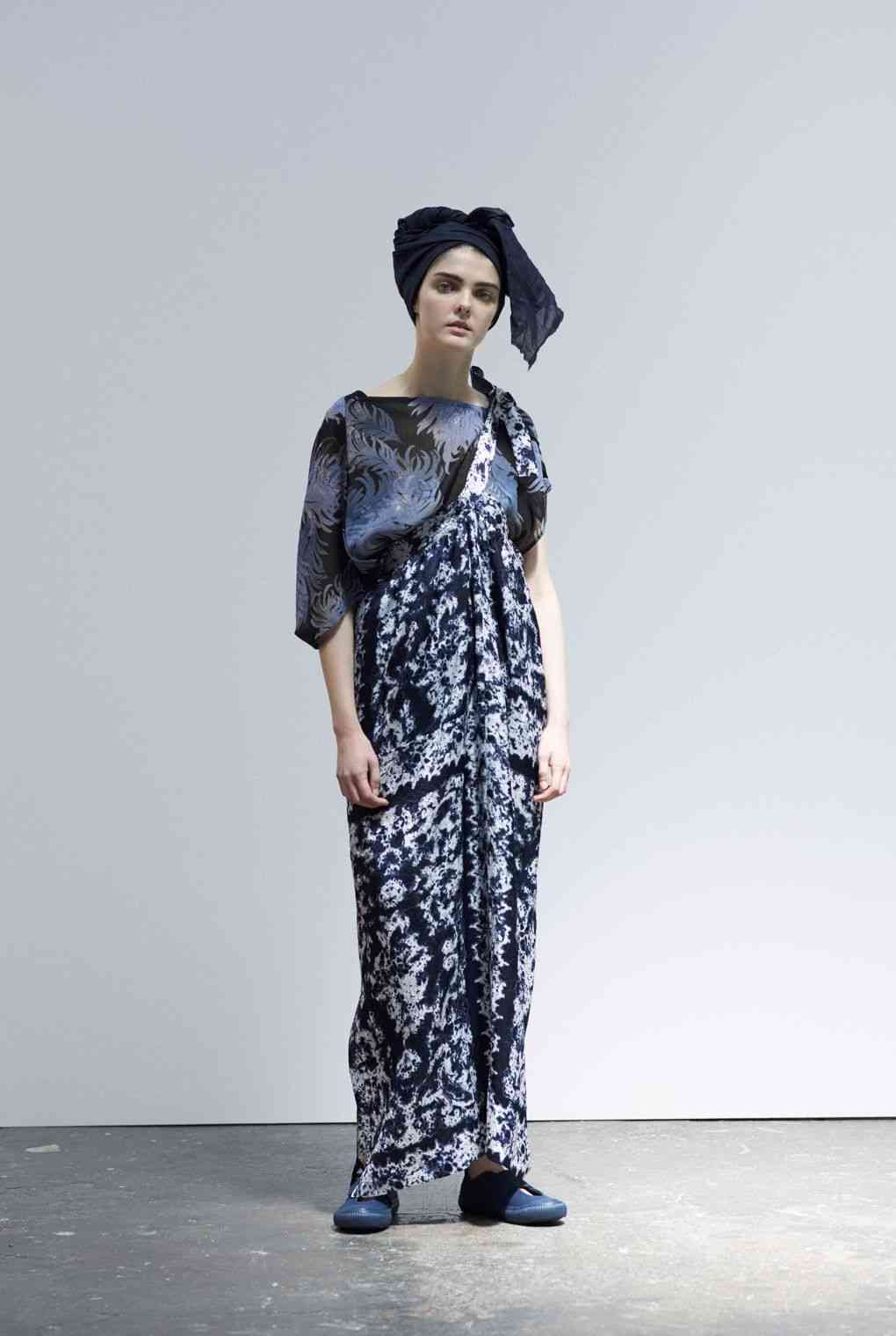 Imprimeuri abstracte obținute cu imprimeu cravată Shibori, adaugă culoare la fundalurile mari, monocrome, dar dând viață elementelor grafice cu un gust contemporan, a căror estetică se detașează de tratamente tradiționale. Fustele și jachetele sunt drapate în jurul corpului într-un mod aproape antic, uneori cu pseudo-cecuri surprinzătoare sau motive jacquard.