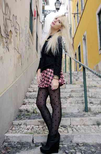 6. Dacă optați pentru colanti cu imprimeuri, ar trebui să îi potriviți cu negru clasic, alb, sau rochii gri. Deci, dacă nu aveți îndoieli cu privire la gustul dvs., atunci puteți îndrăzni pentru diferite combinații de dresuri cu imprimeuri și rochii.